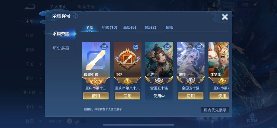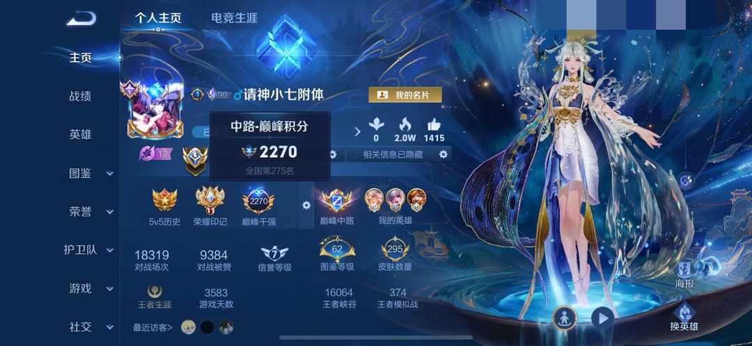巅峰千强119名闪电框⭐️正式服2小国小乔嫦娥榜⭐️多皮肤极品号⭐️可排位禁巅峰