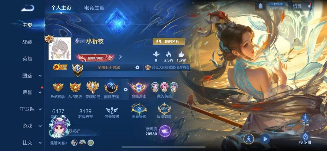 巅峰千强闪电框⭐️v10+双小国瑶空空儿在榜⭐️局内显示132名⭐️漂亮号推荐⭐️可排位禁巅峰