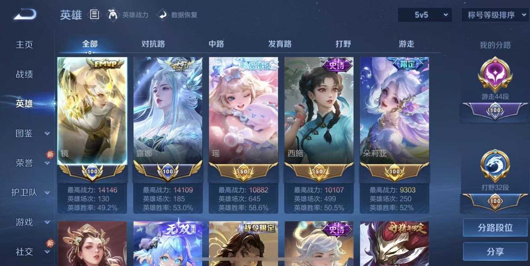历史小国标镜露娜多女生英雄省标❤️瑶瑶满皮❤️可排位禁巅峰
