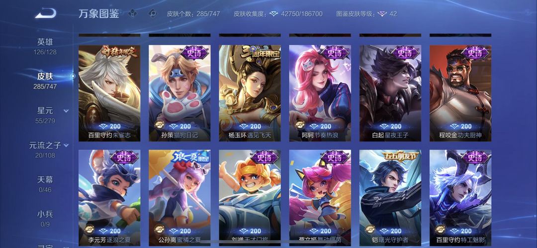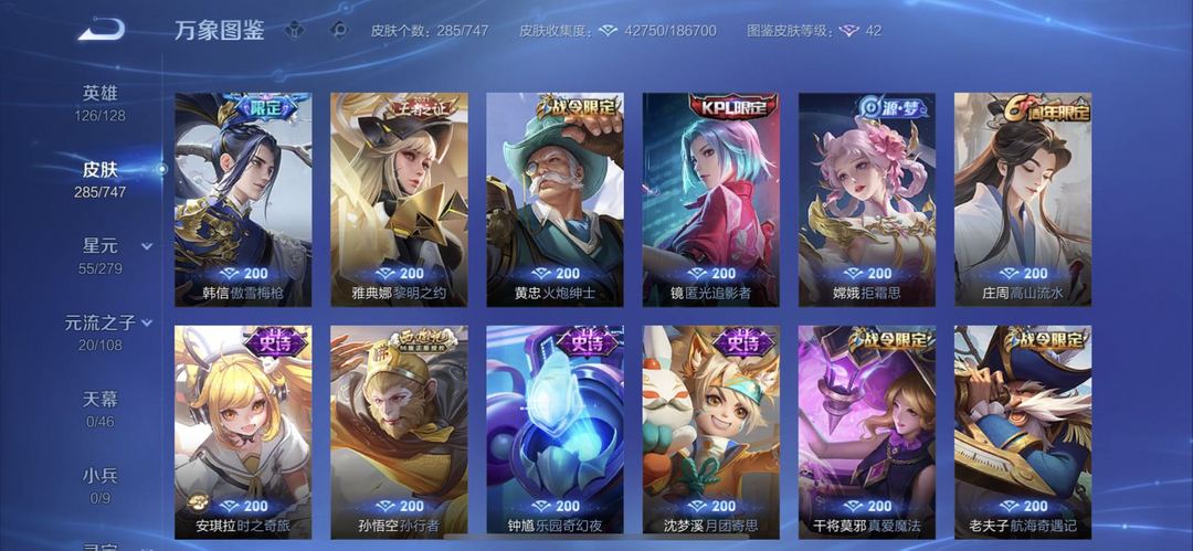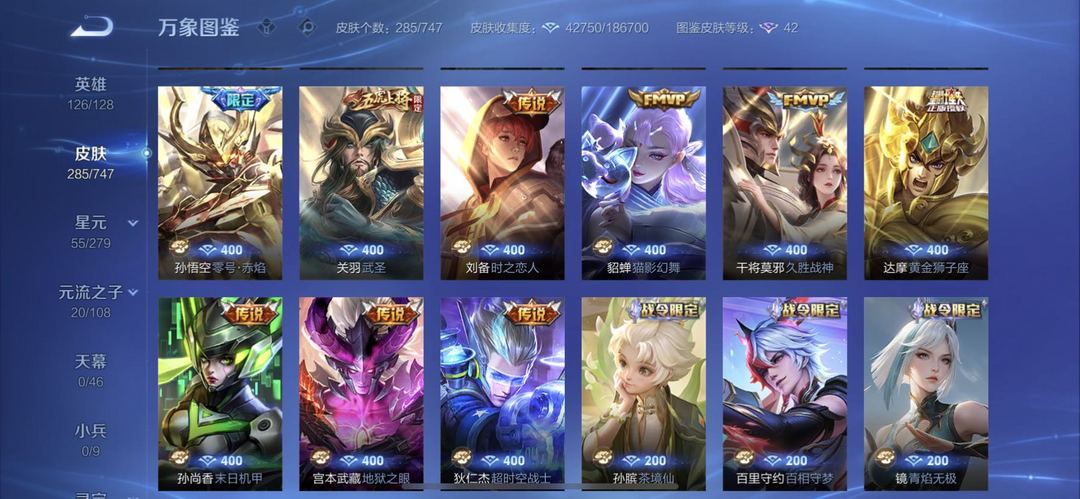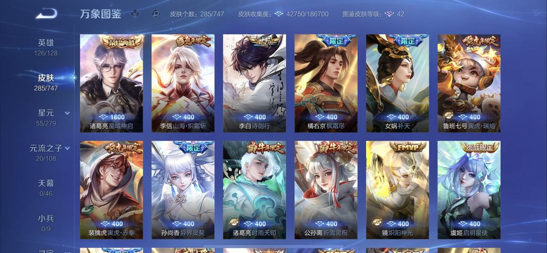 v8典藏诸葛亮285皮虎年限定异界孙尚香情人节限定大圣娶亲露娜一生所爱126英雄多传说多限定