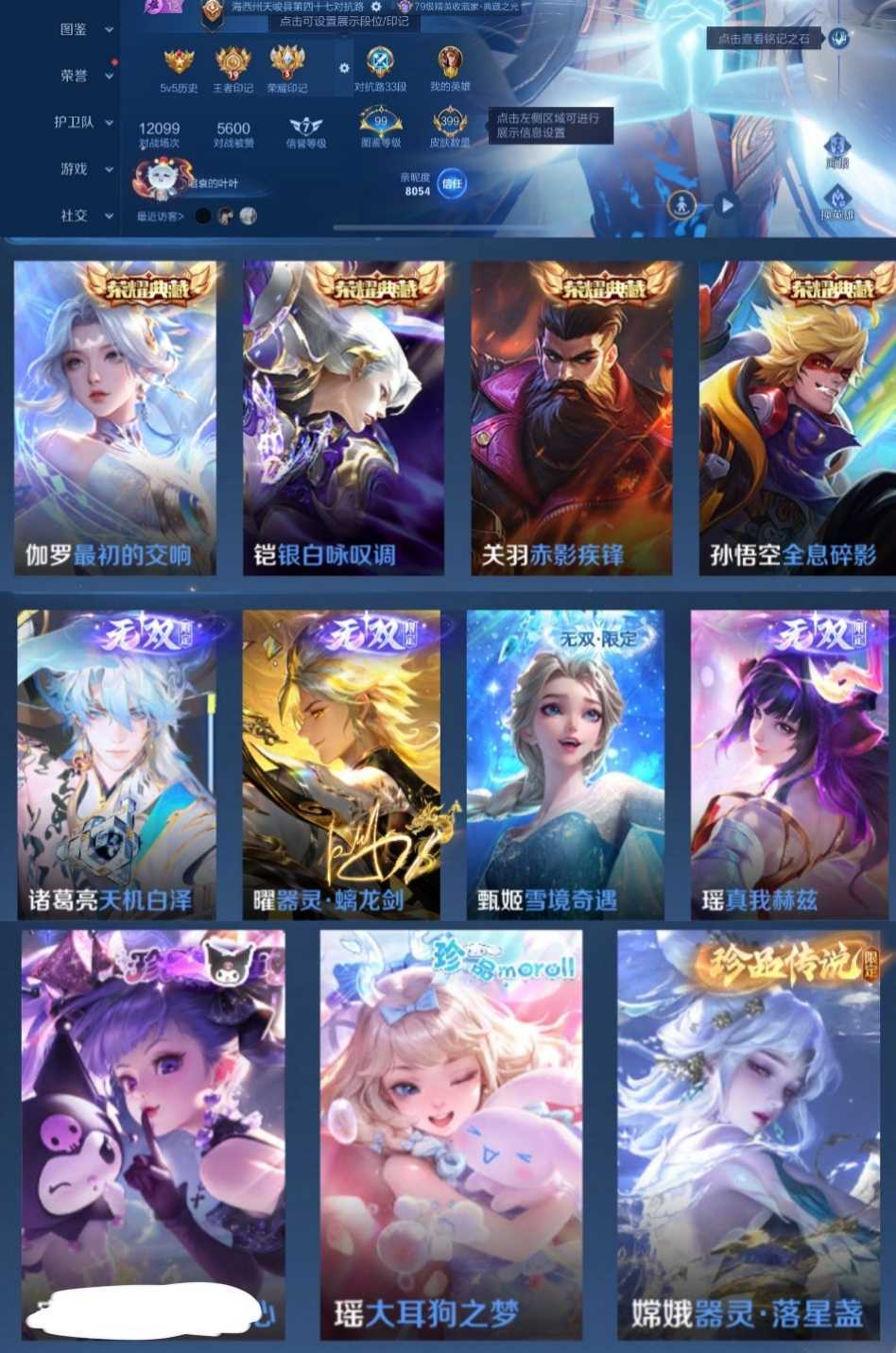 限制: 租号1次及以上 | 撤单率<49%才可租用此帐号装备描述:时间到了还登录白玩或者顶号全部改密拉黑处理永不解除,顶号机器会秒禁玩改密,顶号不仅拉黑还没得玩,赚三两块不容易,请理解谢谢。 ❤❤❤❤❤❤❤❤❤❤❤❤❤❤❤❤❤❤❤ 请勿开挂,挂机,送头,骂人,撤单后游戏等如有违规永久拉黑永不解除。 重置二级密码不要费劲了,号主每天都会上号查看,多行不义必自毙,人在做天在看,多做好事多自律,少做缺德事。 该号英雄127个皮肤399个,典藏4个,无双4个,珍品传说3个,星传说2个,传说27个,史诗115个,祝您游戏愉快~