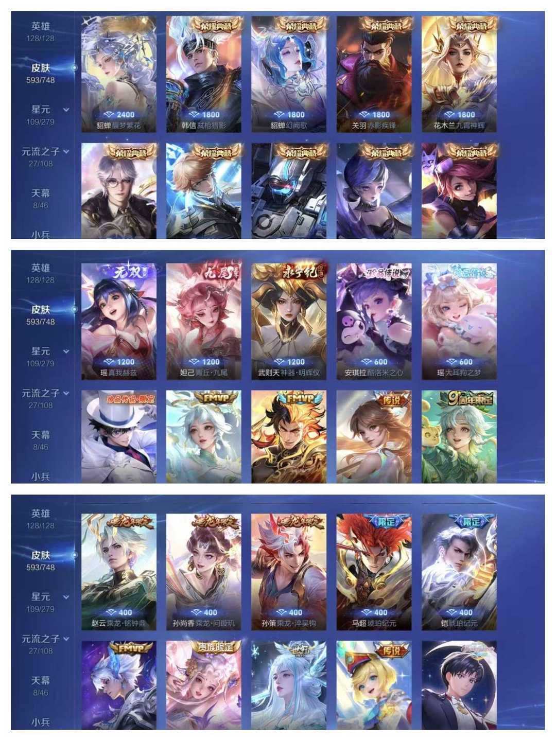 大国服1.6万战马可⭐国服孙尚香⭐巅峰万强魔方⭐怪盗基德馥梦繁花大耳狗之梦⭐十典藏⭐八天幕