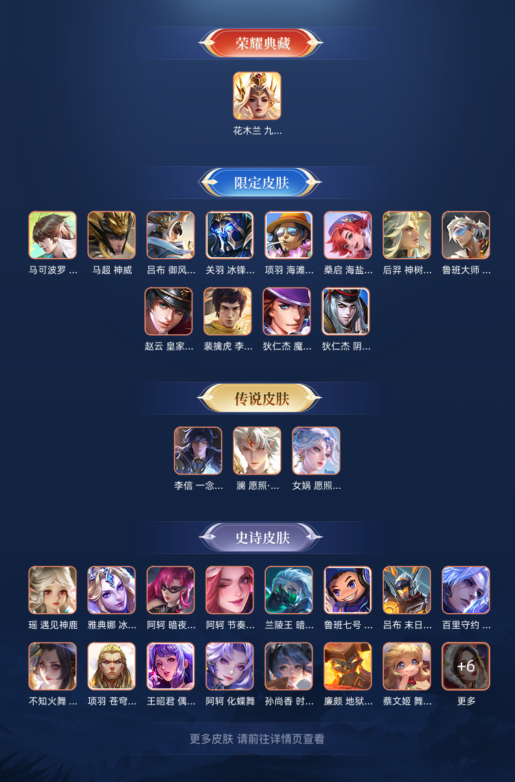 马超三皮 花木兰有个荣耀典藏和水晶屠龙者 关羽的限定 澜fmvp 龙年限定 女娲龙年限定
