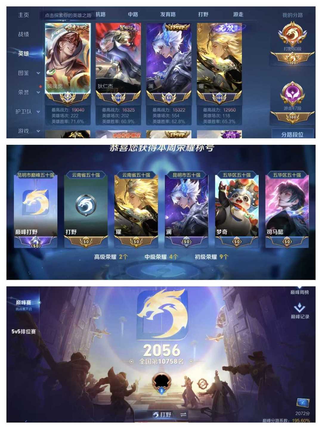 孙悟空无相⭐在榜禁巅峰2056⭐大国服2万战老虎⭐国服耀澜狄仁杰⭐在榜省级80段打野⭐巅峰百强魔方