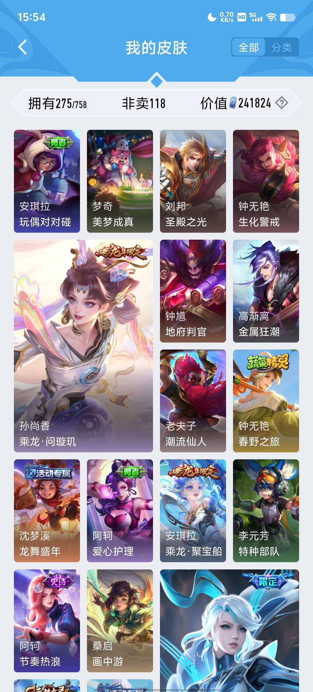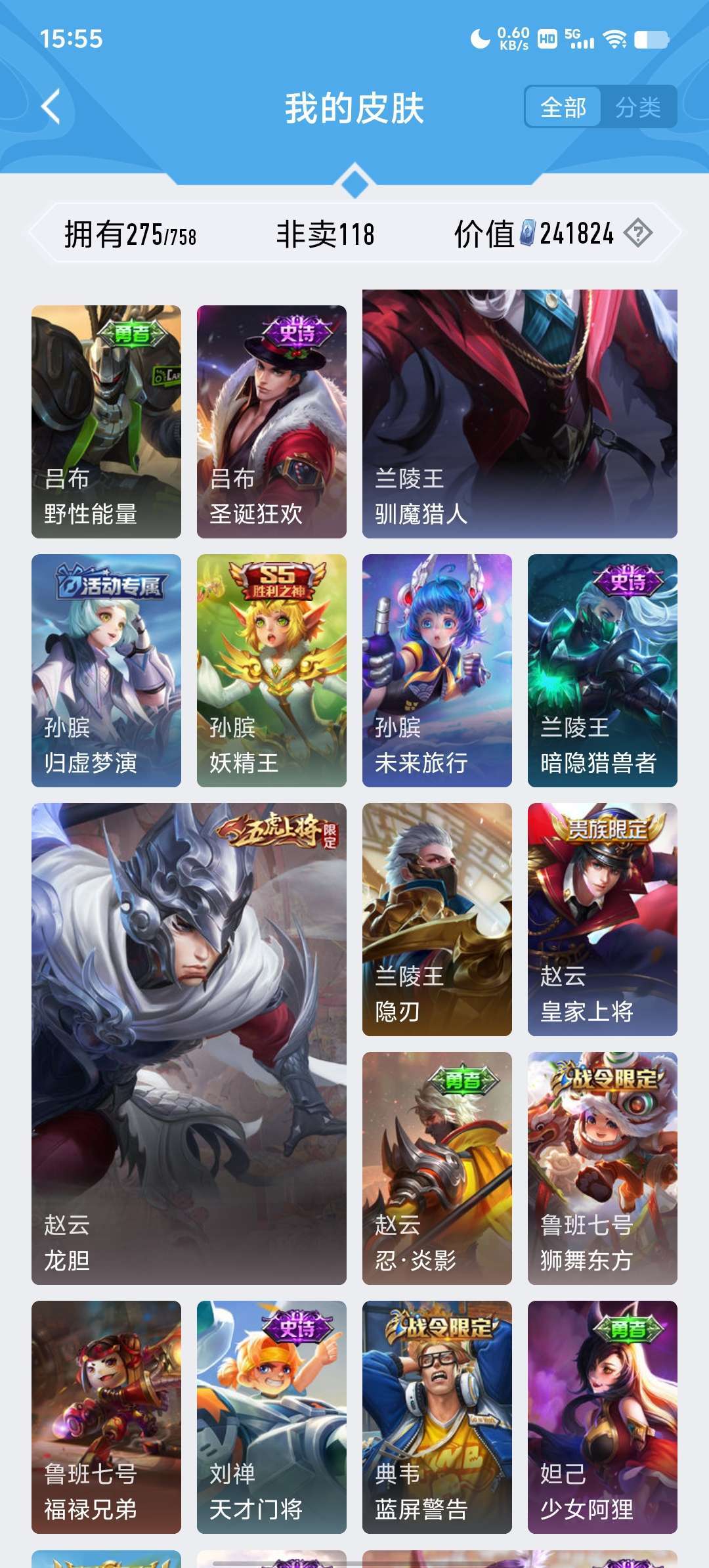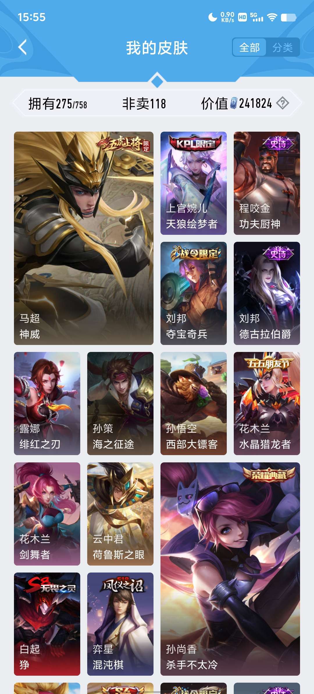 段位荣耀68可排位●荣耀典藏3●限定皮肤