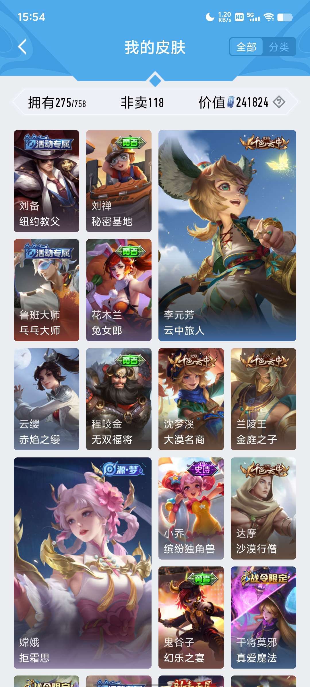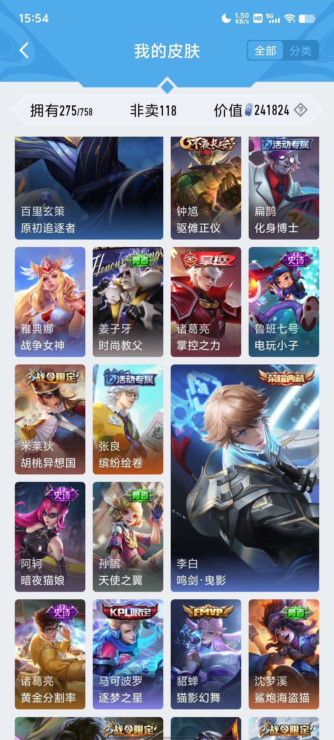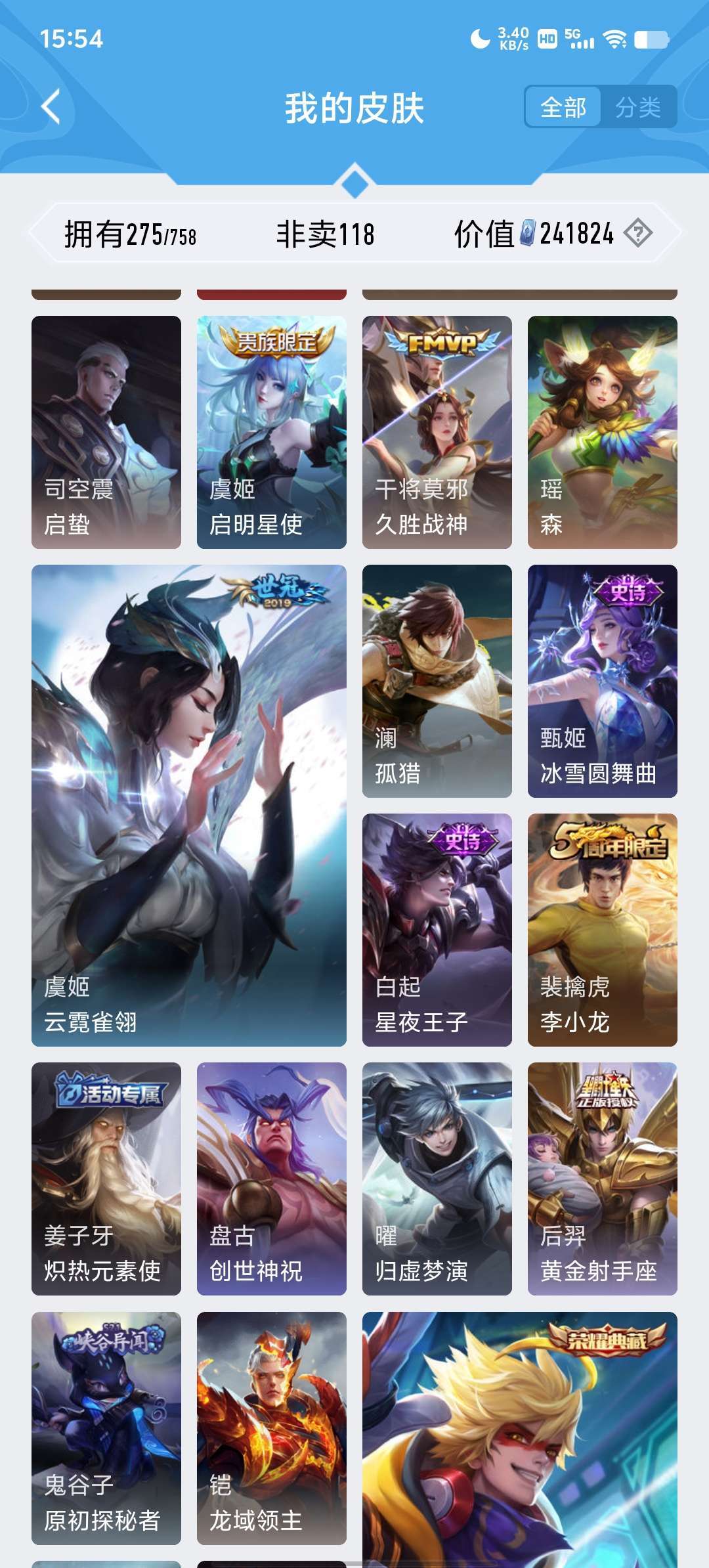 段位荣耀68可排位●荣耀典藏3●限定皮肤