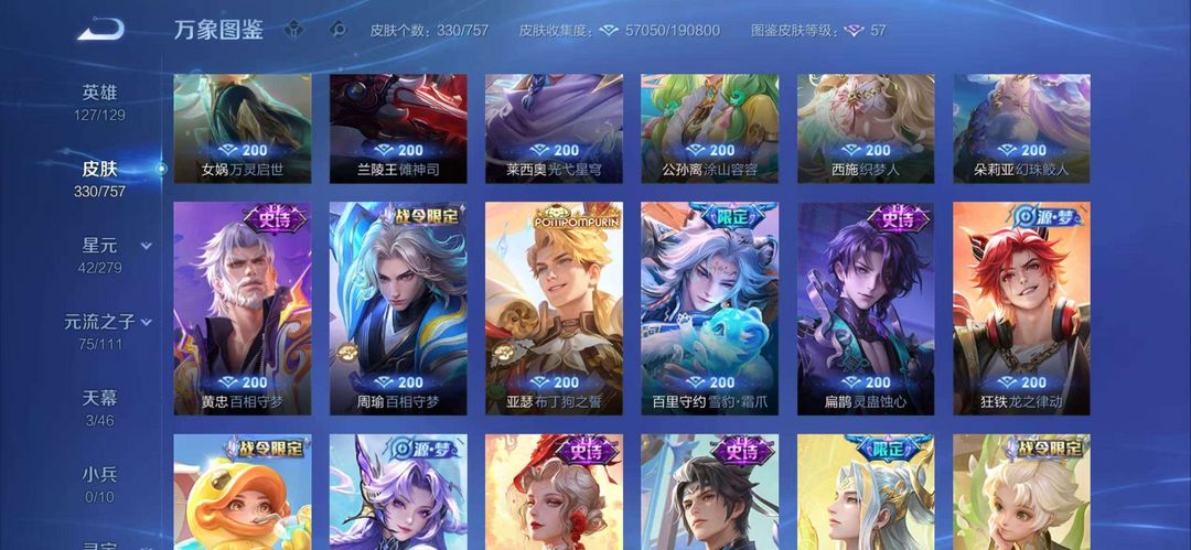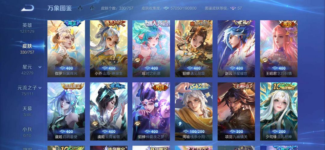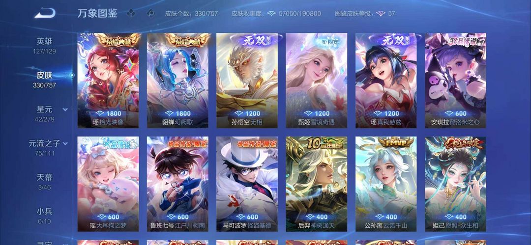 女号两典藏*猴子无相*瑶甄姬无双*瑶全皮*蛇年全套*柯南全套*酷洛米全套*多传说史诗