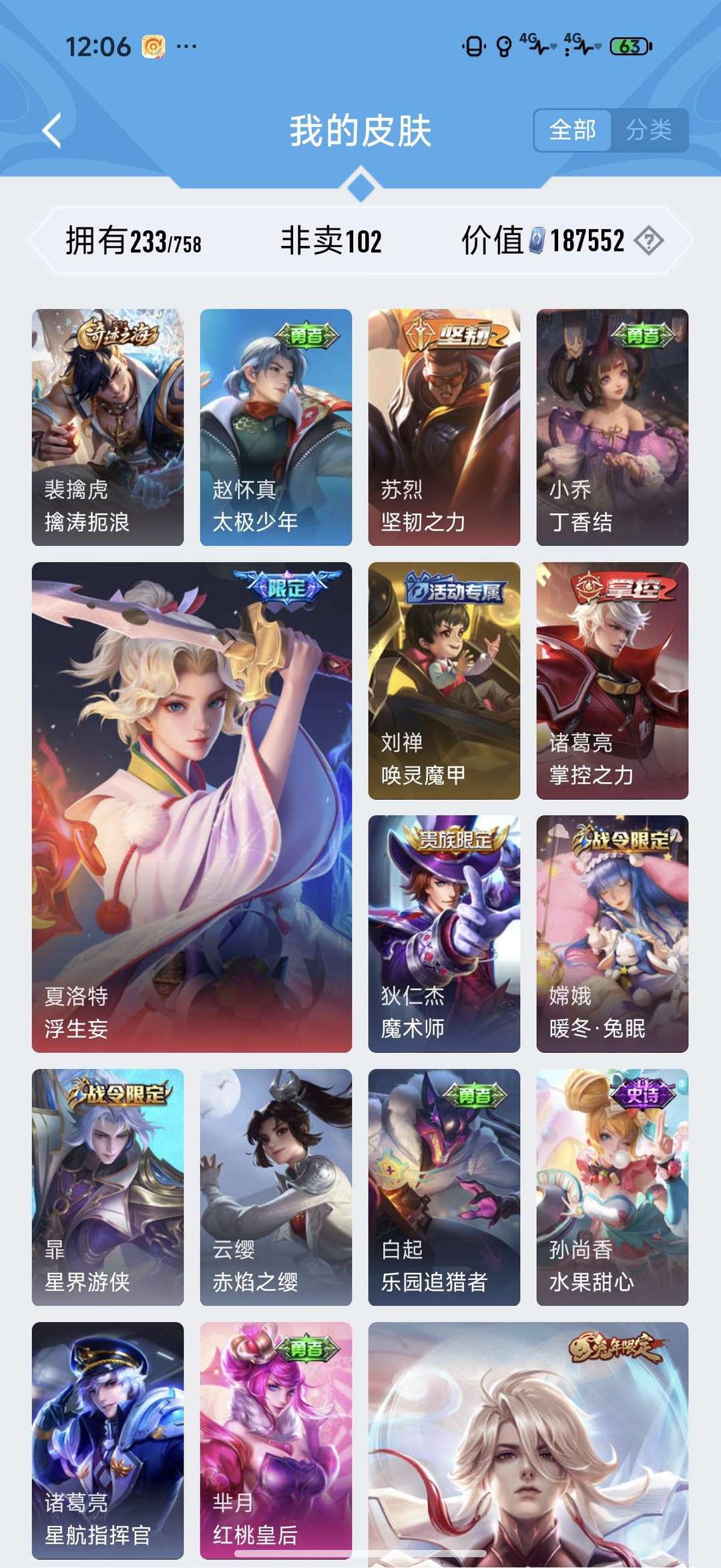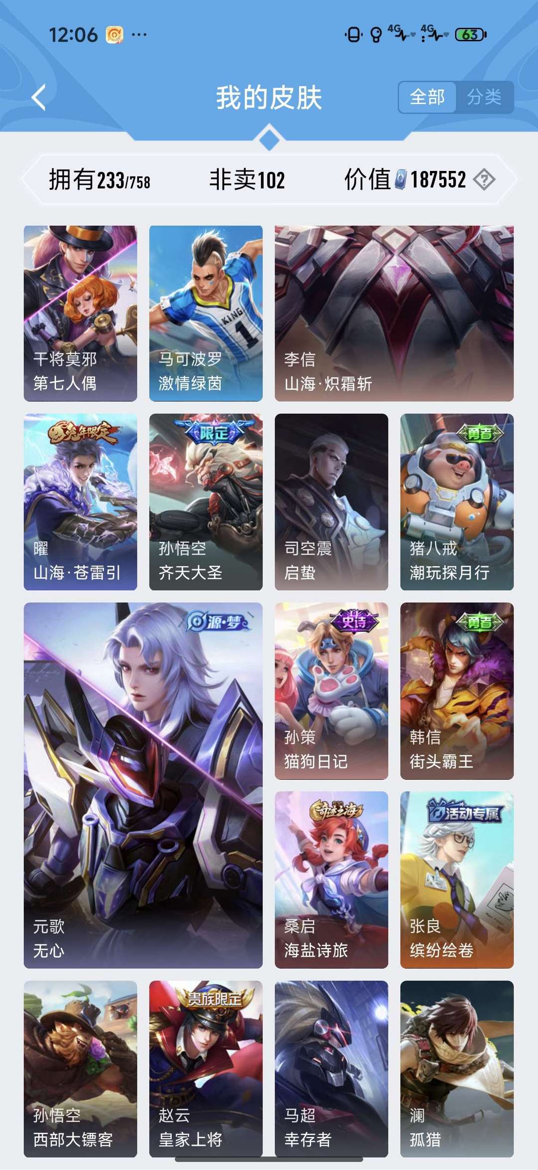 装备描述:毁号,涉及毁坏虚拟财产罪及计算机安全罪,请文明游戏素质游戏,让我们共建美好租号平台 本游戏账号: 英雄多皮肤多。 私人所属英雄皮肤有:李信 山海·炽霜斩李白 诗剑行孙悟空 齐天大圣夏洛特 浮生妄曜 山海·苍雷引兰陵王 影龙天霄马可波罗 妄想实况达摩 沙漠行僧暃 星界游侠戈娅 驭风魔法鬼谷子 五谷丰年李元芳 妄想特派桑启 海盐诗旅嫦娥 拒霜思嫦娥 暖冬·兔眠狄仁杰 阴阳师狄仁杰 魔术师王昭君 午后时光阿古朵 江河有灵刘禅 唤灵魔甲项羽 海滩派对赵云 皇家上将司空震 地狱燃心甄姬 落雪兰心艾琳 流音漫舞盾山 圆桌骑士裴擒虎 天狼狩猎者西施 玲珑珍味钟无艳 超时空战士等等 注意事项: A.游戏过程中请不要恶意挂机或者不文明发言B.恶意挂机、顶号等行为将被拉黑无法再次下单C.进入游戏后中途请勿退出登陆,否则无法再次上号D.部分账号由于异地登录可能会出现密码错误提示,通常再尝试5-6次后可上号。 喜欢本账号请点 ☆收藏☆ 方便下次租用