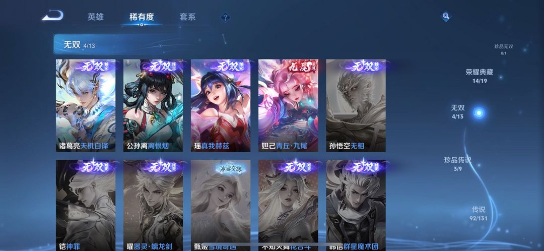 包天便宜❤️V10⭐️597皮⭐️15典藏 4无双 3珍品 255限定⭐️诸葛公孙离瑶妲己无双