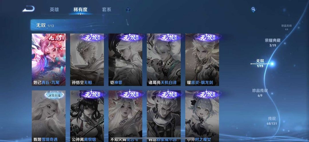 装备描述:不禁言⭐️无双V11⭐️455皮⭐️满珍品无双 3荣耀水晶 1无双 6珍品 153限定⭐️ 馥梦繁花