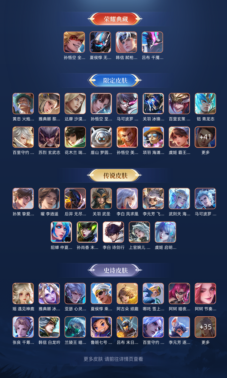 装备描述:苹果Q-V9-128英雄-446皮肤-4典藏皮肤-1典藏英雄-1珍品-17传说-143史诗 【英雄全皮】:刘禅全皮,阿轲全皮,扁鹊全皮,鬼谷子全皮,苏烈全皮,狂铁全皮,盾山全皮,阿古朵全皮,金蝉全皮,戈娅全皮,空空儿全皮,影全皮,少司缘全皮 【荣耀典藏】:韩信弑枪猎影,孙悟空全息碎影,武则天英雄,夏侯惇无限飓风号 【珍品传说】:马可波罗怪盗基德 【传说皮肤】:百里玄策白虎志,貂蝉仲夏夜之梦,关羽武圣,后羿无尽星芒,李白诗剑行,李元芳飞鸢探春,马可波罗深海之息,娜可露露前尘镜,孙策挚爱之约,孙尚香末日机甲,武则天海洋之心,曜李逍遥 ,虞姬启明星使,后羿神树通天,云缨幻光神枪,桑启鸣野蒿,李白凤求凰