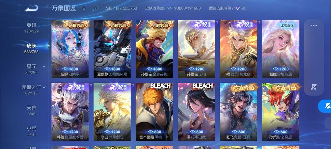 533皮肤❤️3典藏5无双❤️61传说❤️猴子无相无双曜螭龙剑宫本暃死神联动❤️死神联动满蛇年❤️紫
