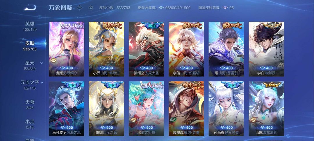 装备描述:533皮肤❤️3典藏5无双❤️61传说❤️猴子无相无双曜螭龙剑宫本暃死神联动❤️死神联动满蛇年❤️紫瑶6星传说❤️