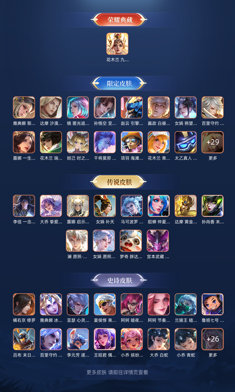 干将冰雪圆舞曲安琪拉如懿貂蝉逐梦之音赵云引擎之心露娜基本满皮元歌满皮木兰基本满皮大乔基本全皮
