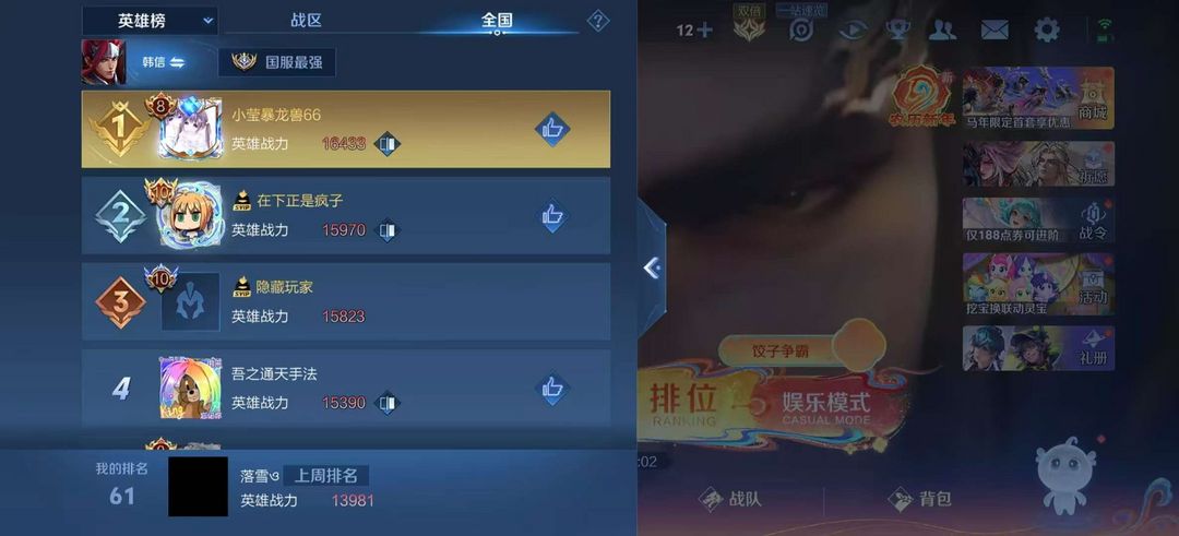 国服韩信 巅峰赛万强 无禁言一切正常禁止巅峰赛发现直接拉黑