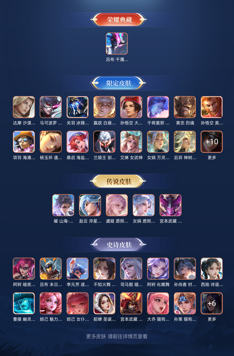 装备描述:蛇年虞姬 女娲 兔年 耀 干将 冰雪节限定 关羽 冰封战神 其他皮肤自己看