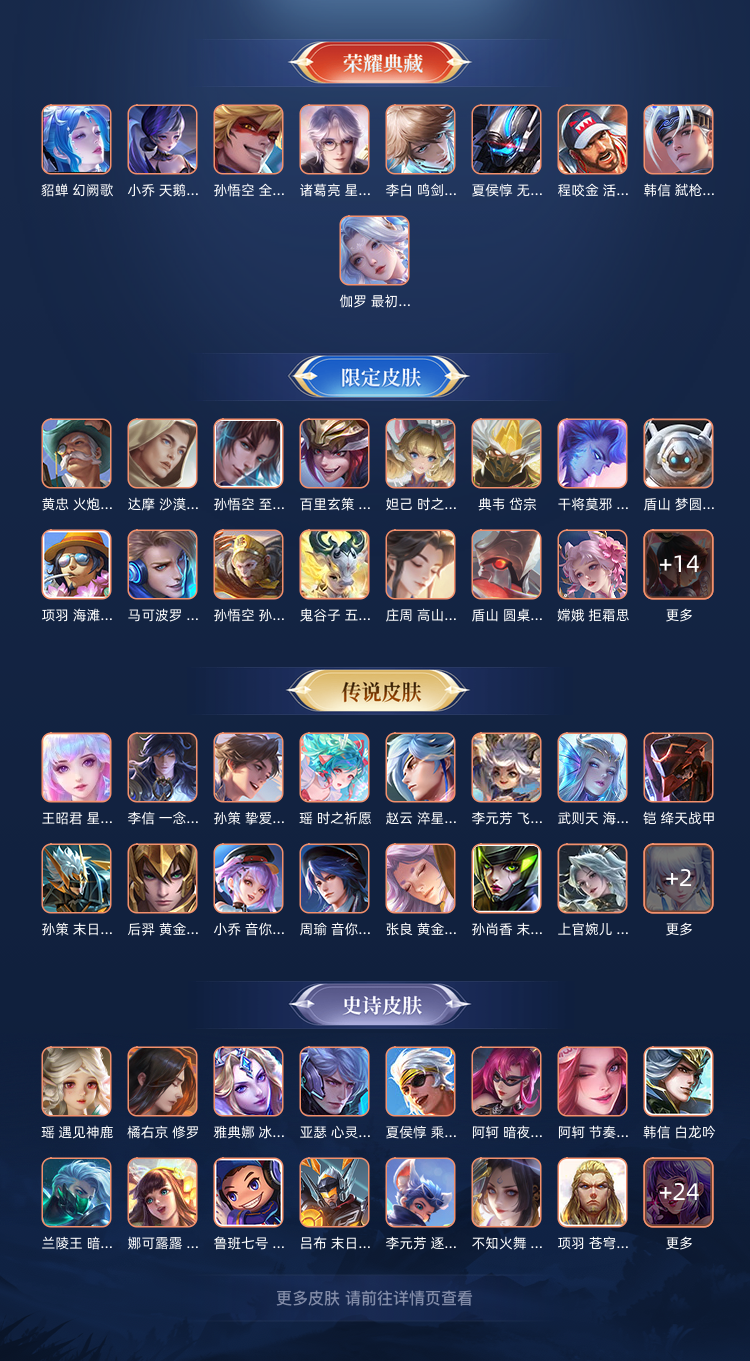 典藏、武侧天、诸葛、小娇、夏侯惇、程咬金、孙悟空、貂蝉、李白、韩信、李信无双、耀、公孙离、伽罗等