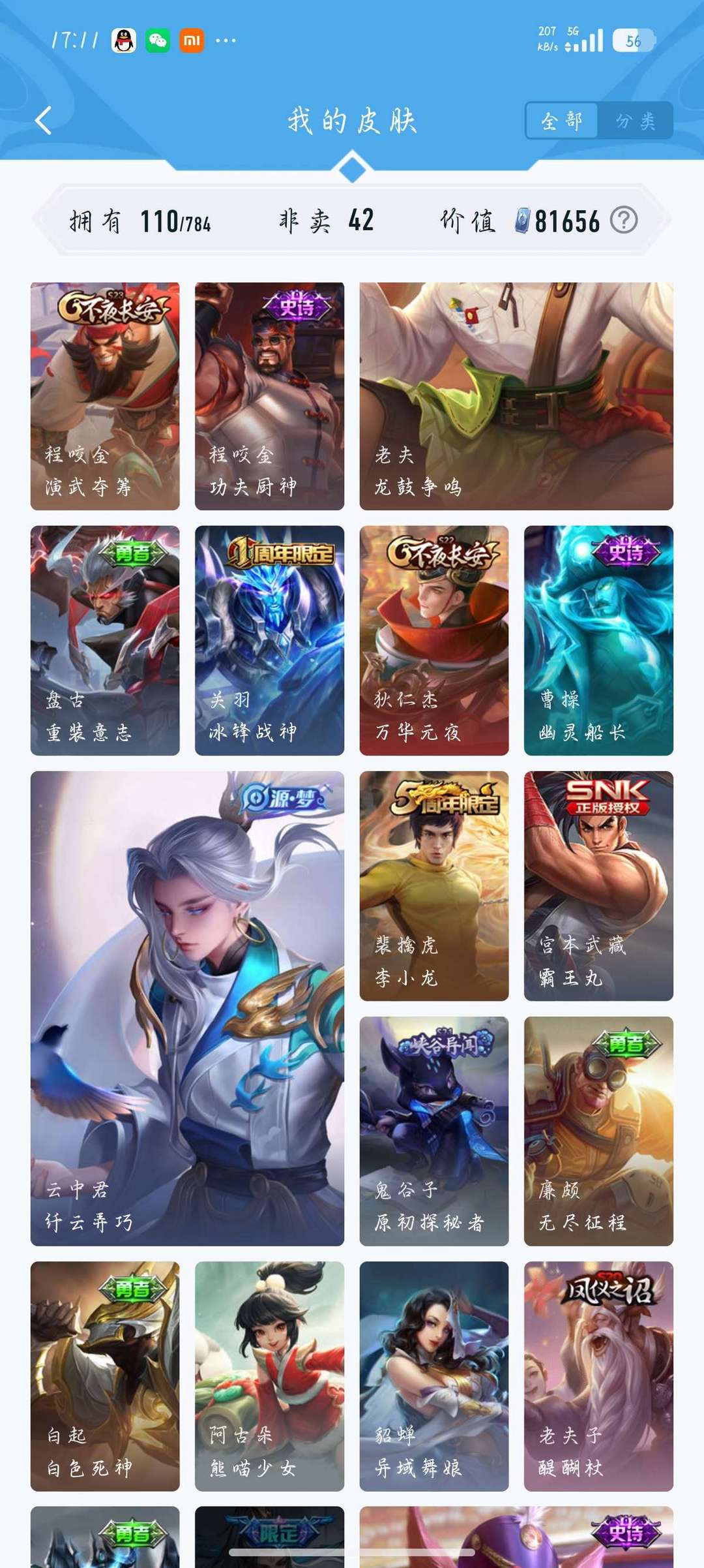 装备描述:账号拥有多款高品质限定皮肤,包括马超神威、关羽冰锋战神、裴擒虎李小龙、宫本霸王丸等稀有皮肤,还有乘龙聚宝船、幻光神枪、琥珀纪元等热门特效皮肤,皮肤数量多、手感好、特效拉满,账号安全稳定,仅出租游戏使用权,放心租用,体验极佳!
