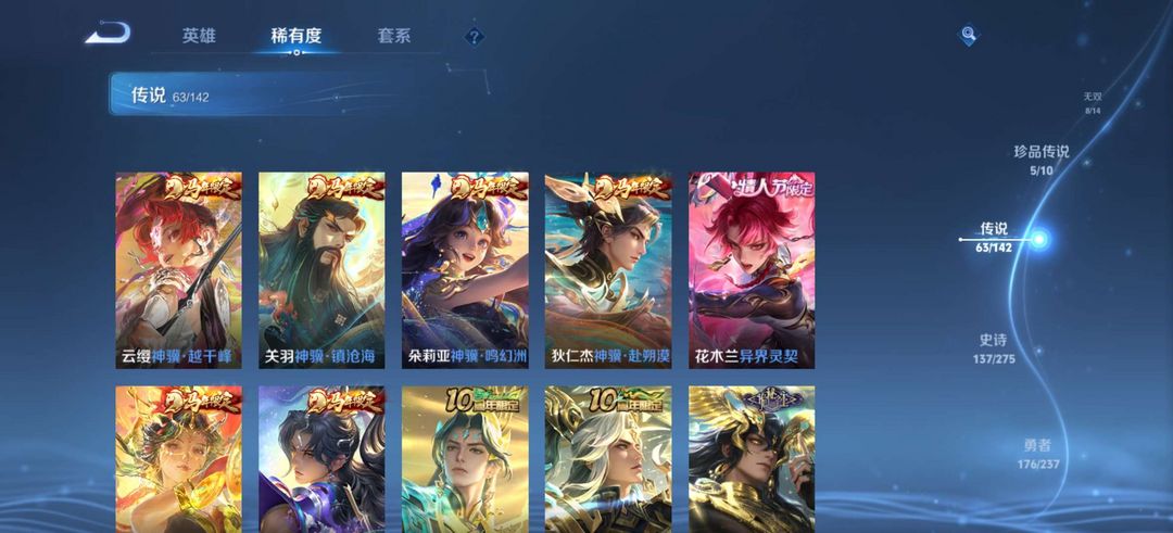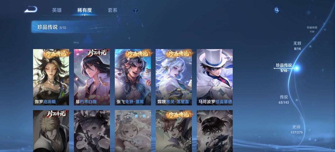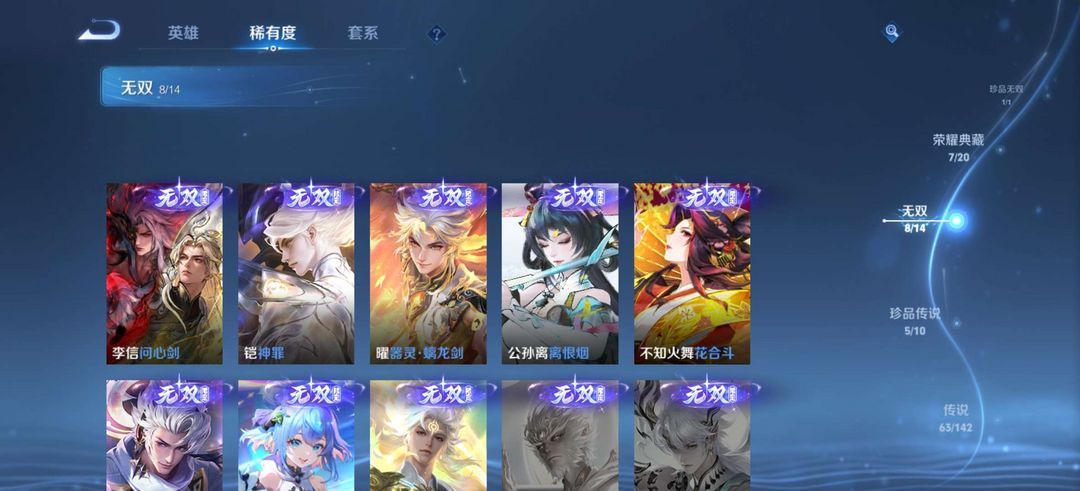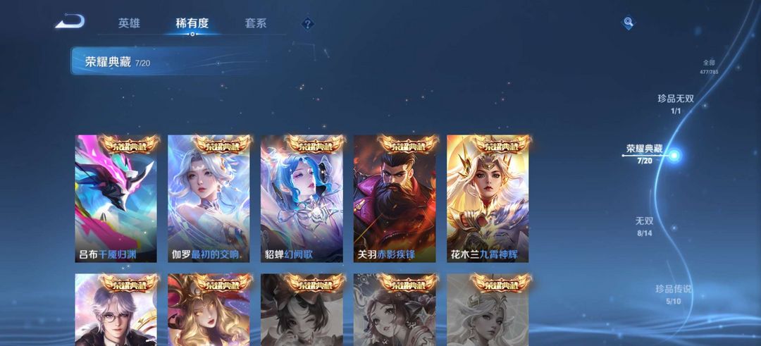 7荣耀●8无双●63传说●龙年蛇年马年限定●貂蝉馥梦繁花