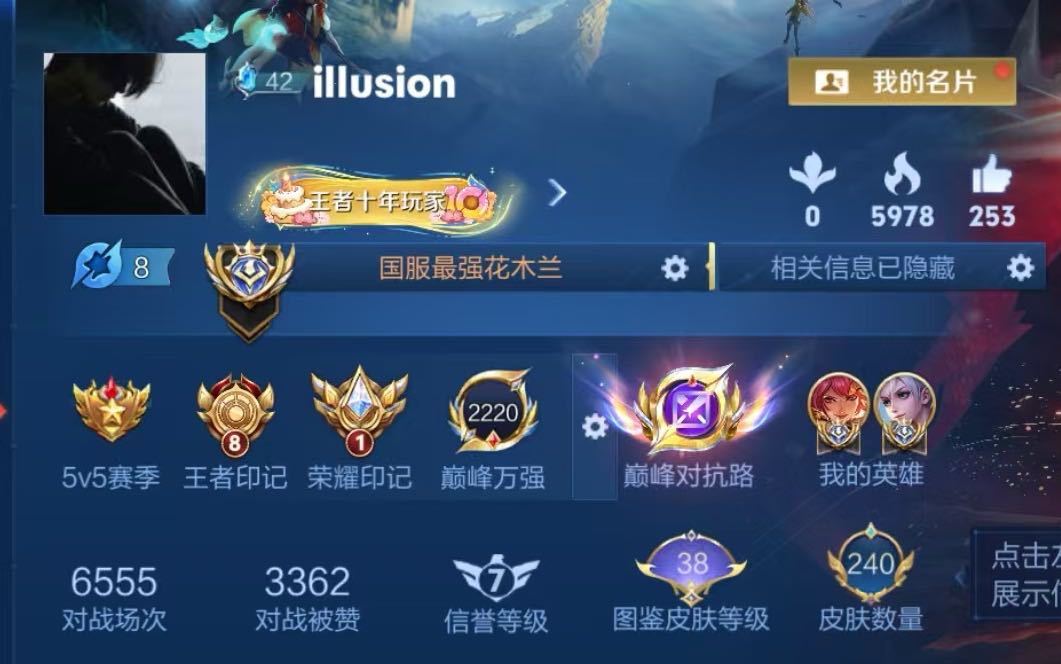 巅峰2220千强框⭐2月正式服在榜双国服花木兰亚连⭐在榜国11影⭐荣耀典藏限定⭐