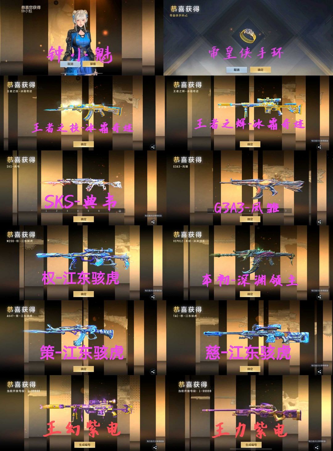 V10十强♓SKS典韦♒王幻紫电套❤江东骇虎权策慈♈深渊领主套♏帝皇侠手环♓王者之技♒全五期紫电至尊