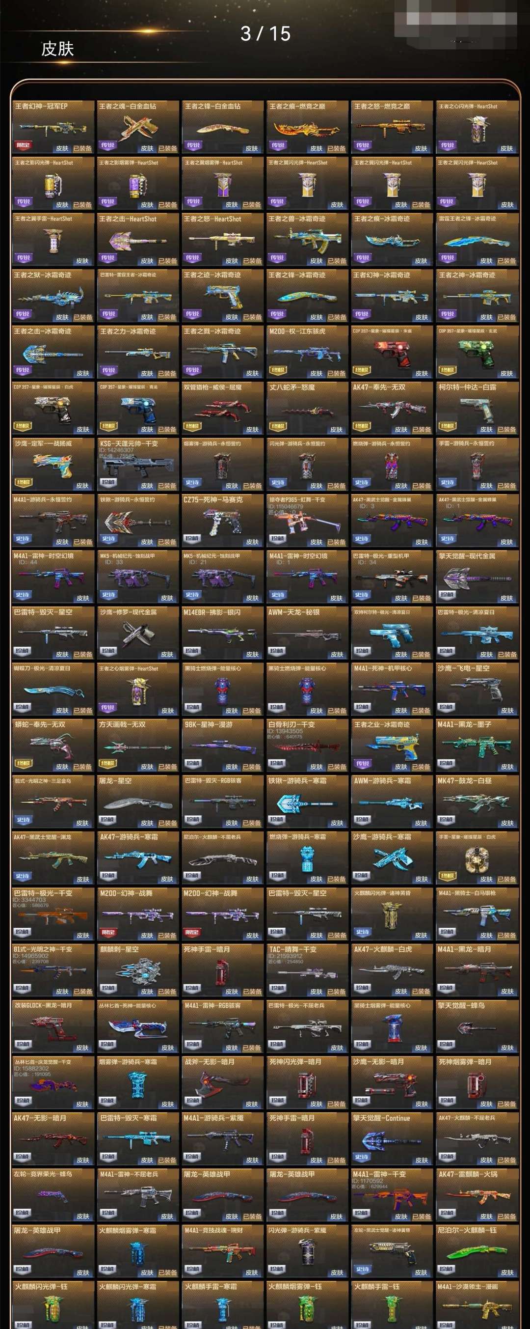 装备描述:可排位 幻神套(战舞皮肤音效卡)、星象全套、奉先全套(皮肤 音效卡 最终消灭)王幻(冰霜皮音效卡最终消灭特效)王怒(熔岩皮,女团皮音效卡)王力(冰霜皮音效卡)本初套、太史慈套、m200权、cop*5、黑龙魂等,详情上线查看生化爆破双号