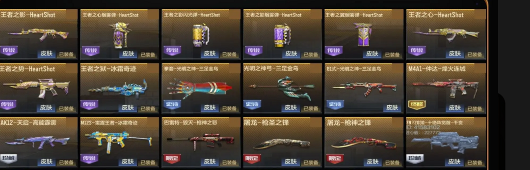 装备描述:王者主武器 热门狙 拉丝皮 COP都有