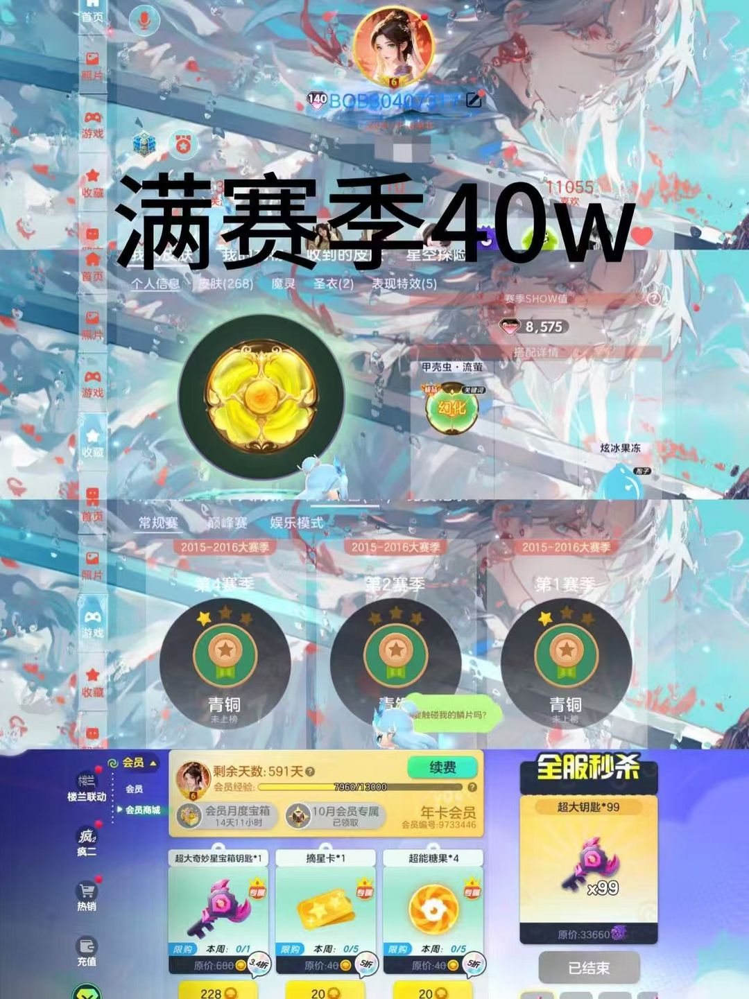 满赛季40万排名号500天年卡【幻化十字架甲壳虫*幻化路西法*水滴*懵逼猫】指挥辅助号顶配人上人
