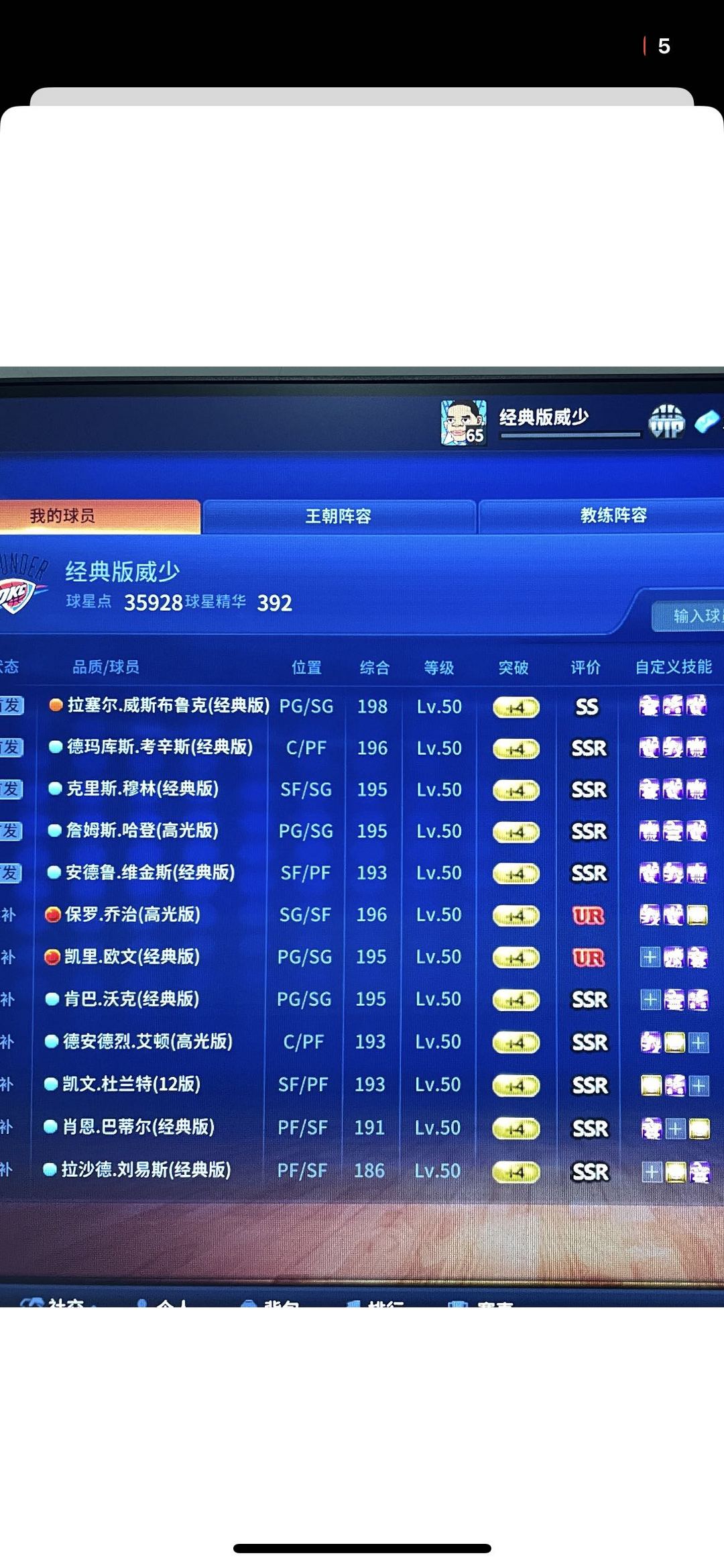 ss经典威少带队ur欧文ur乔治ssr考辛斯ssr维金斯ssr穆林ssr哈登ssr杜兰特ssr沃克