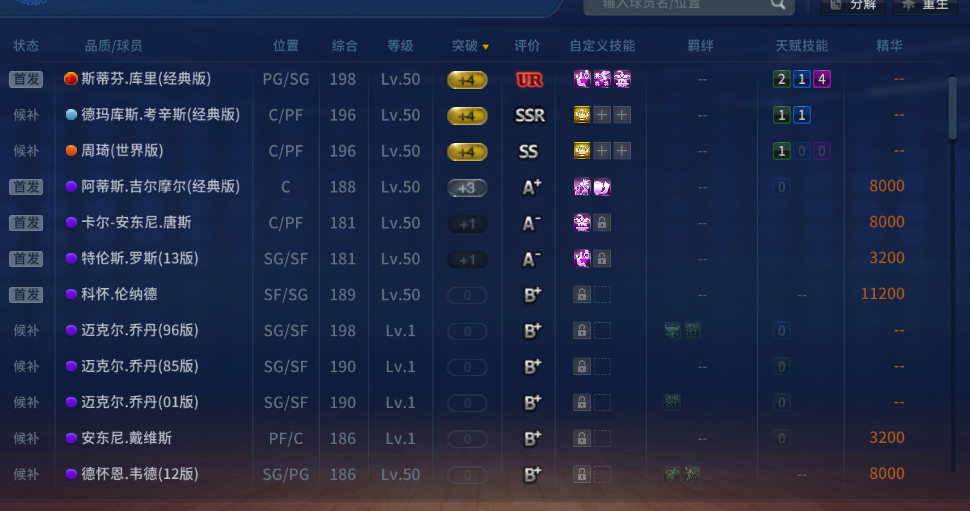 装备描述:最新SS经典周琦⭐斯台⭐⭐UR库里⭐⭐王朝街头无敌!!购物卷留着重置段位,撤单点无法登陆