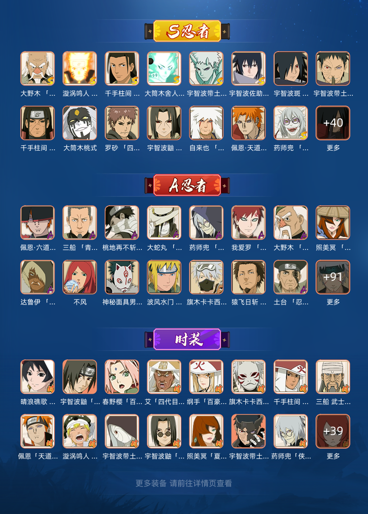57S,426全忍者,77级魅力值,3千5百万战力。马班,六道带土,五影斑,全328忍者 详情看图
