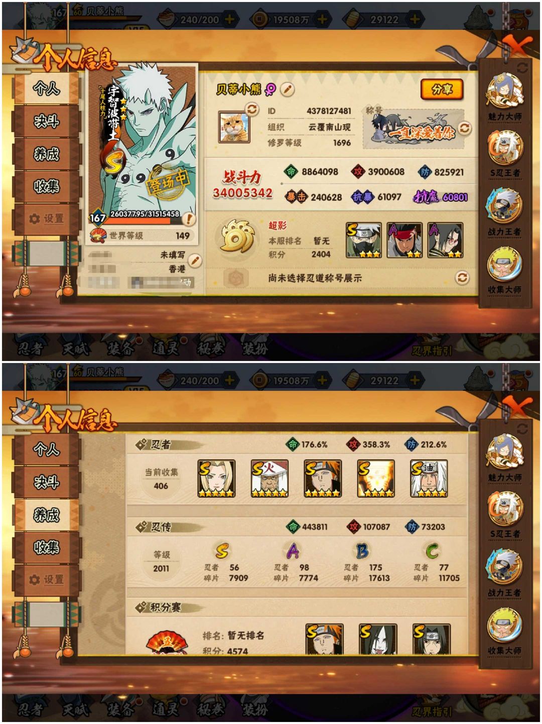 〖56s 98a 406忍 3400万〗〔漂泊带土❤黑绝〕九喇嘛水门☀十尾带土☀六尾鸣人☀九喇嘛水门