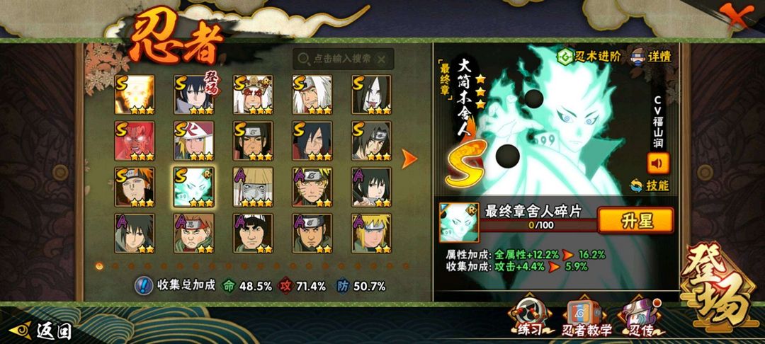 13S⭐漂泊带土⭐传说自来也⭐最终章舍人⭐死门凯⭐仙鸣⭐秽土柱间⭐解斑⭐百战鼬⭐新春
