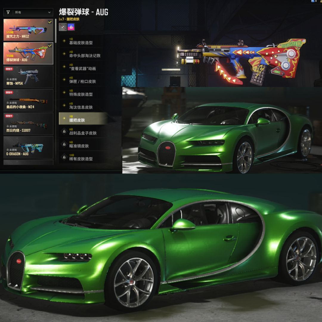 二级密码987654可排绿+白布加迪超级跑车⑦级爆裂弹球AUG①级魔力MK12金面小熊背包