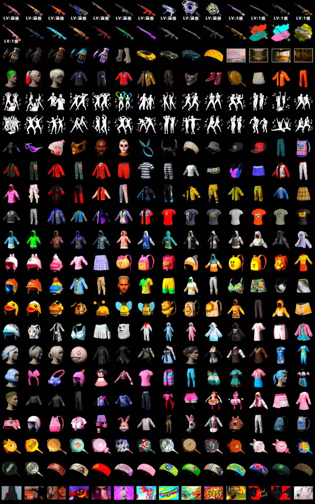 19 满级喷子10满级2异色✅柏林黑东南亚金鱼尼尔金手指✅黑鬼满内购滑雪紫烟雾