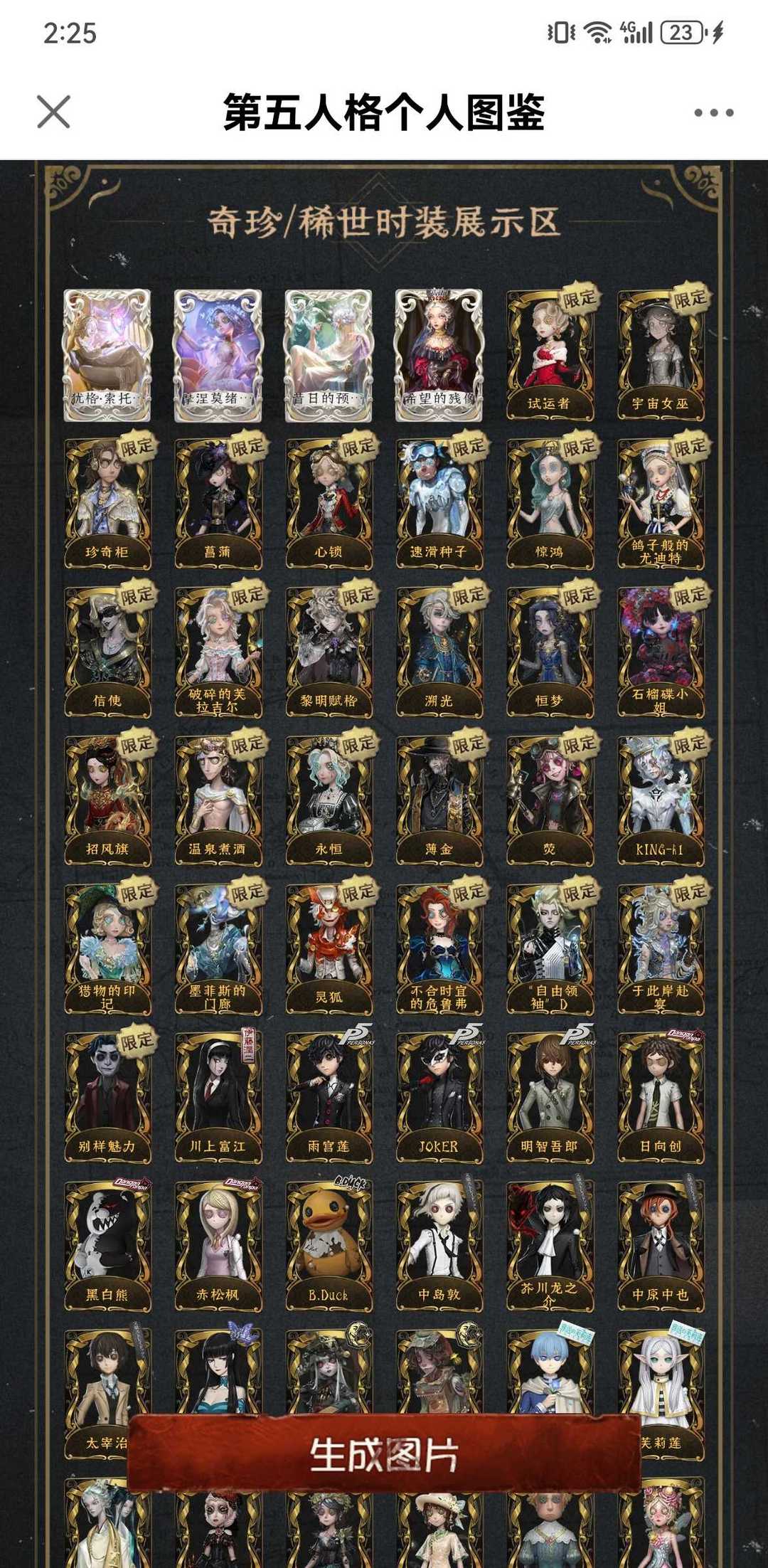 装备描述: 犹格·索托斯之使 摩涅莫绪涅之梦 昔日的预言者 希望的残像 试运者 宇宙女巫 珍奇柜 菖蒲 心锁 速滑种子 惊鸿 鸽子般的尤迪特 信使 破碎的芙拉吉尔 黎明赋格 溯光 恒梦 石榴碟小姐 招风旗 温泉煮酒 永恒 薄金 荧 KING-h1 猎物的印记 墨菲斯的门廊 灵狐 不合时宜的危鲁弗 “自由领袖”D 于此岸赴宴 别样魅力 川上富江 雨宫莲 JOKER 明智吾郎 日向创 黑白熊 赤松枫 B.Duck 中岛敦 芥川龙之介 中原中也 太宰治 壹原侑子 笼中偶 逐风蜗 辛美尔 芙莉莲 千里绘卷 浴火绯花 怪鸟 初晴 小人国 不会枯萎的花 西尔菲德 建筑师 玛利亚公理 摩根勒菲 今夜不再 盛夏光影 变彩 椰香假日 盖提亚之遗 盛夏飞盘 童话国 茶话会 海盐特调 半精灵骑士 灵犀妙探 “鬼烛” 缚愿 冠军舵手 星辰 长夜 欧律狄刻 幽灵帆 首席顾问 片刻闲暇 “绯” “D.M” “白” “加特” 双一 十字路口的美少年 奥村春 新岛真 佐仓双叶 高卷杏 PANTHER 坂本龙司 SKULL 喜多川祐介 FOX 熊猫保育员 秘密大厨 恶之花 教鞭 雨中曲 撒玛拉 红菱艳 祖祖 菲丽丝 桃乐丝 梦境中的爱丽丝 丰悦 “未知射线”X 等风来 爱神之吻 牛仔-船影 “裁缝夫人” 灰烬狂想 雪上小王子 逐浪的玫瑰 多加雷萨 壁画修复员 善忘的海马体 胡桃夹子 浴石商人 溃夜猎者 苗木诚 罪木蜜柑 狛枝凪斗 雾切响子 七海千秋 王马小吉 江之岛盾子 天海兰太郎 入间美兔 最原终一 反光镜 公路骑士 零件拍档 气胎 助燃剂 刻度修正 更纱 宿醉 “盲区” 应许之日 起航日 毕业日 海盗电台 放映厅 布朗熊 可妮兔 蛙里奥 B.Duck潮 Buffy Rice 正位审判 锦中鳞 逆位审判 补天裂 蜀中客 踏莎行 填海平 程小时&陆光 竹荫守护者 滚滚伙伴 广津柳浪 樋口一叶 梶井基次郎 江户川乱步 异星开采 线控信号 火炮手 再造者 提炼师 女大公 纸翼小姐 Lady K Chef K 凯瑟琳·沃德 爱德华·梅森 瑞吉儿·加德纳 丹尼尔·狄更斯 星航之旅 源自星辰 百目鬼静 五月七日小羽 异想Hello Kitty 悦乐酷洛米 奇趣美乐蒂 稀缺病案 末世搜救 九月 敖烈 小玉 摩诺 小六 蛋小黄的好朋友 BLK.TRACY 异动指针 “伊始新篇” 采集速巡 加里 梅爱丽 伊布 陶梦嫣 赞因 阿乌拉 休塔尔克 菲伦 掌中篆记 捣蛋裘克 炽天使 往昔 采药人 永生花 银锑 鎏金的表演大师 罗刹绯春 郁金香之梦 蒸汽朋克 蓝调阿拉丁 爱丽丝 警醒的龟先生 黑天鹅之羽 万能钥匙 Re-Swim 归来者 纸心 “月佑者” 香薰桑拿 诡焰 慵懒的兔先生 阿瓦尔的战车 光织守护 墨卡托投影 甜心蛋糕 海西遗风 不愿醒来的女孩 仙鹤 硫火