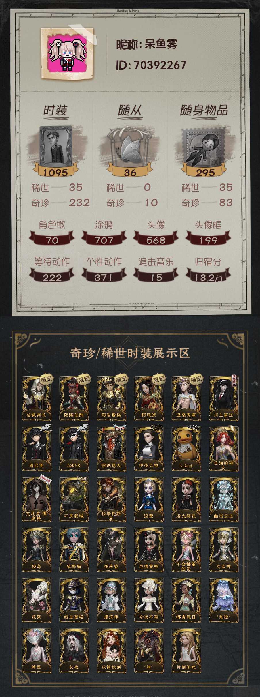 (禁言)70金⚡艾扎克❤JOKER❤伊莎贝拉❤陌路仙踪❤熔岩蛋糕❤总裁判长❤温泉煮酒❤B.Duck❤
