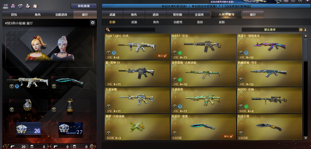 【可排位】☆M200-幻神☆Scar Light-白虎☆M4A1-幻灵☆王者-迷迭香