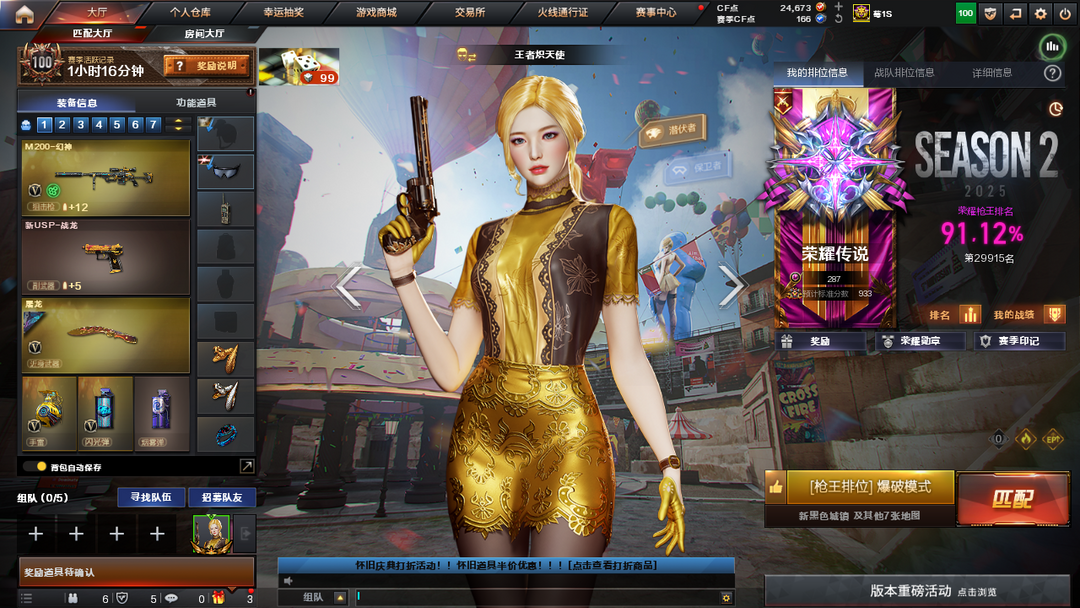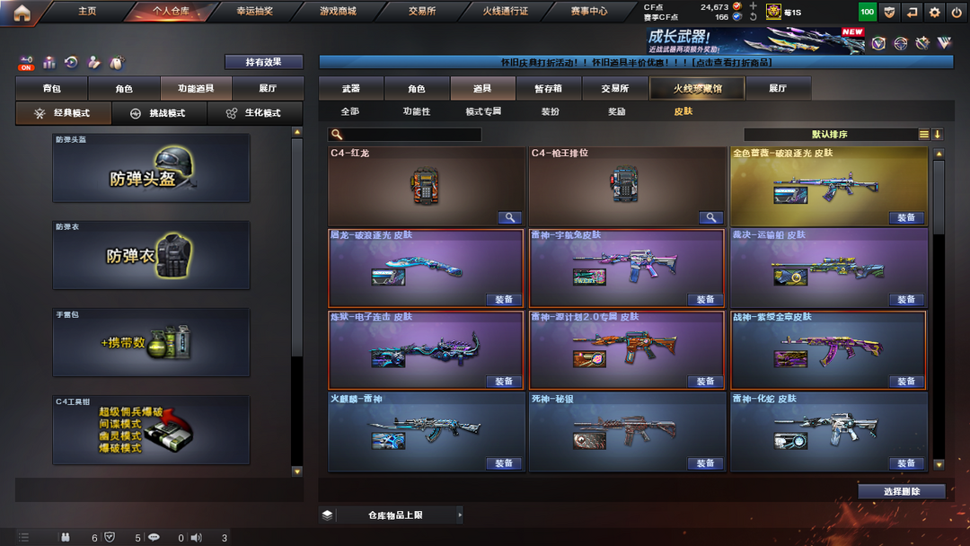 装备描述:幻神,星霆,g36c,qbz,蝴蝶刀,白虎,竞技荣光周年套等百v账号