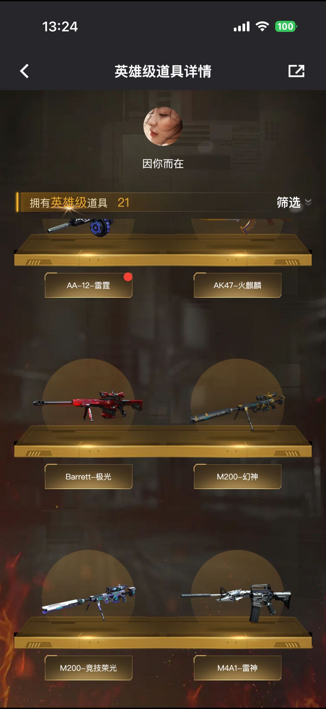 装备描述:白虎 幻神m200 竞技荣光m200 雷神 火麒麟 金色蔷薇 极光 岚兮儿