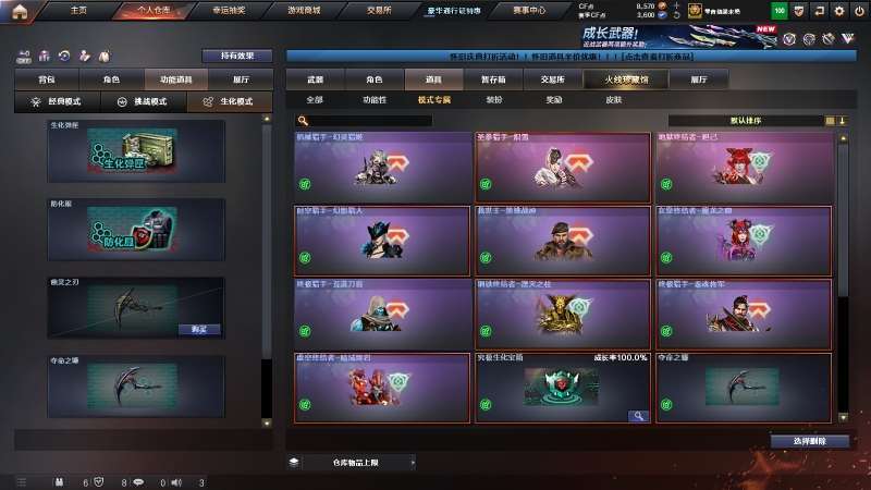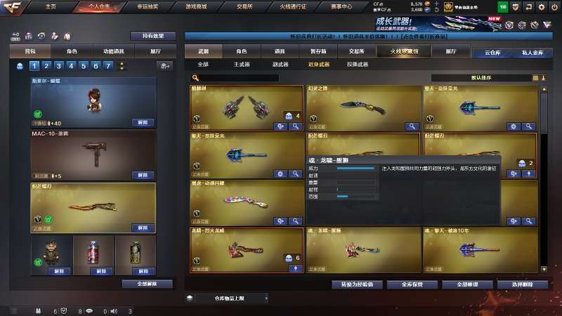 四防隼+双蝴蝶刀+双斯泰尔+五烈龙,终结猎手全皮,生化全装,幻神宠儿爆破全装。