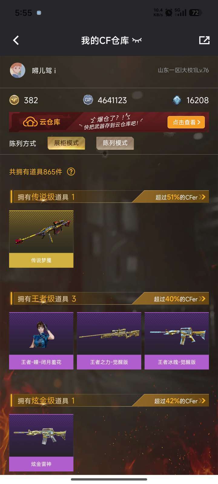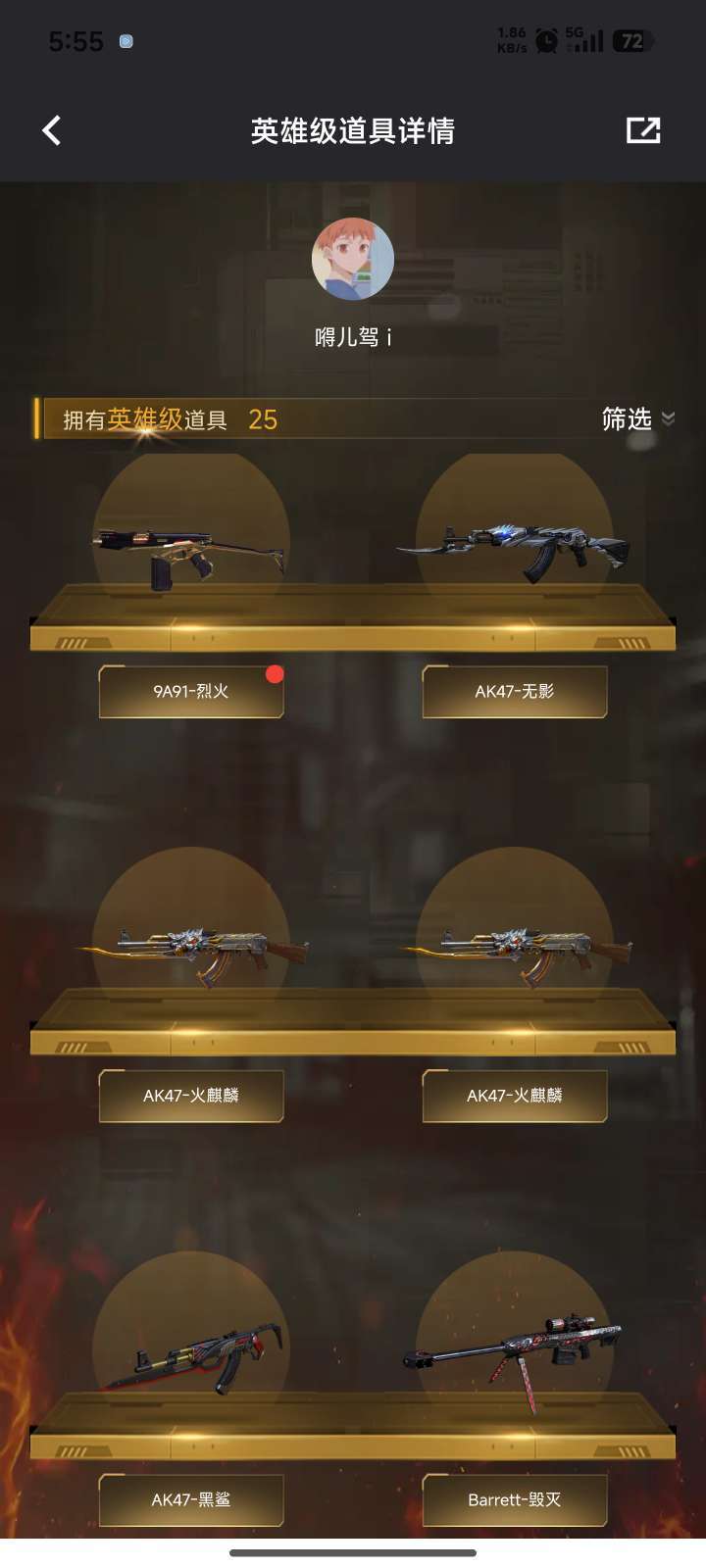 装备描述:山东一区大校1账号,等级76级,道具总量865件,资源豪华且品类齐全。 传说级武器有传说梦魇;王者级道具包含王者-瞳-闭月羞花、王者之力-觉醒版、王者冰魄-觉醒版;炫金级有炫金雷神;英雄级武器涵盖25件热门装备,如Barrett-毁灭、M200-幻神、M4A1-雷神、黑骑士、AK47-火麒麟(双持)、加特林-炼狱、屠龙等,还有竞技荣光系列投掷道具与英雄角色瞳。 出租期间确保账号安全,不顶号、不泄露信息。租客需遵守游戏规则,禁止使用外挂,违规后果自负。