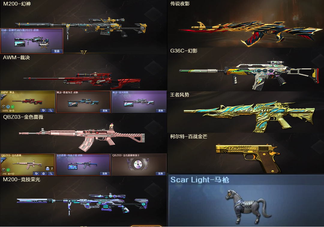 传说夜影❤幻神白鲨竞技+裁决胜者为王秘银❤QBZ电竞音效卡+幻影朱雀马枪+百战金芒柯尔特❤3防关小雨