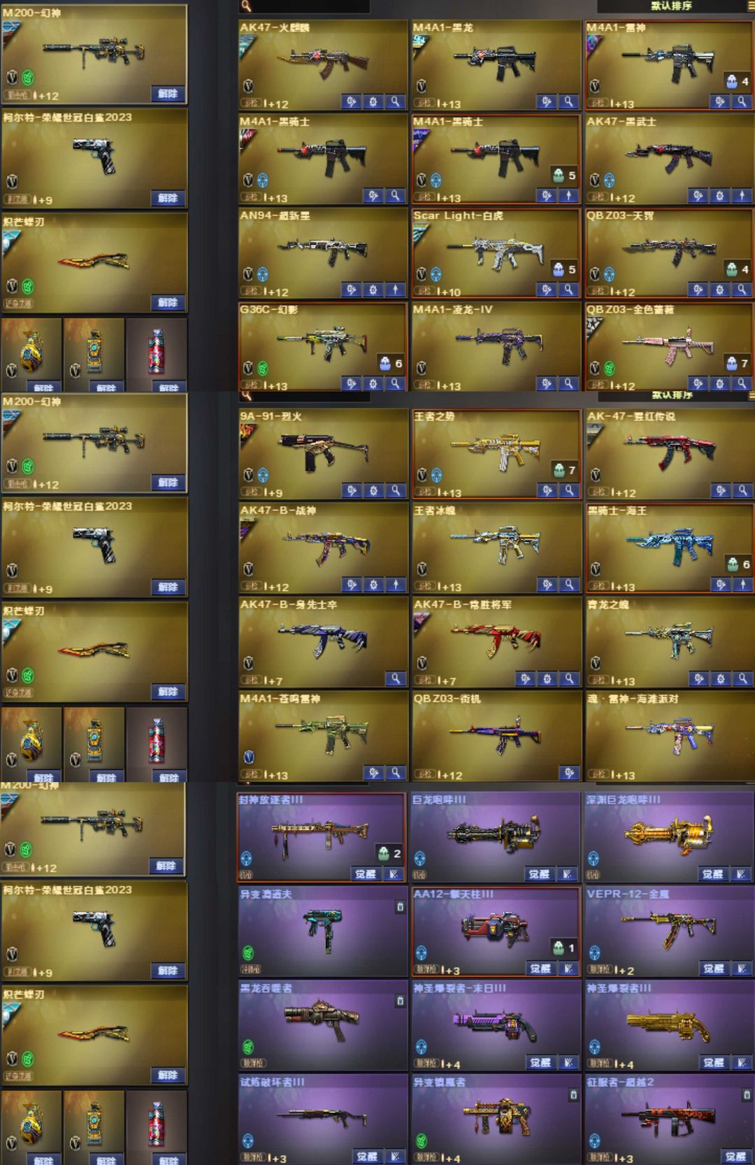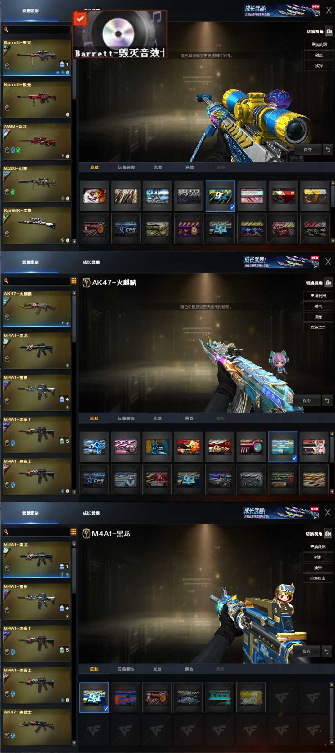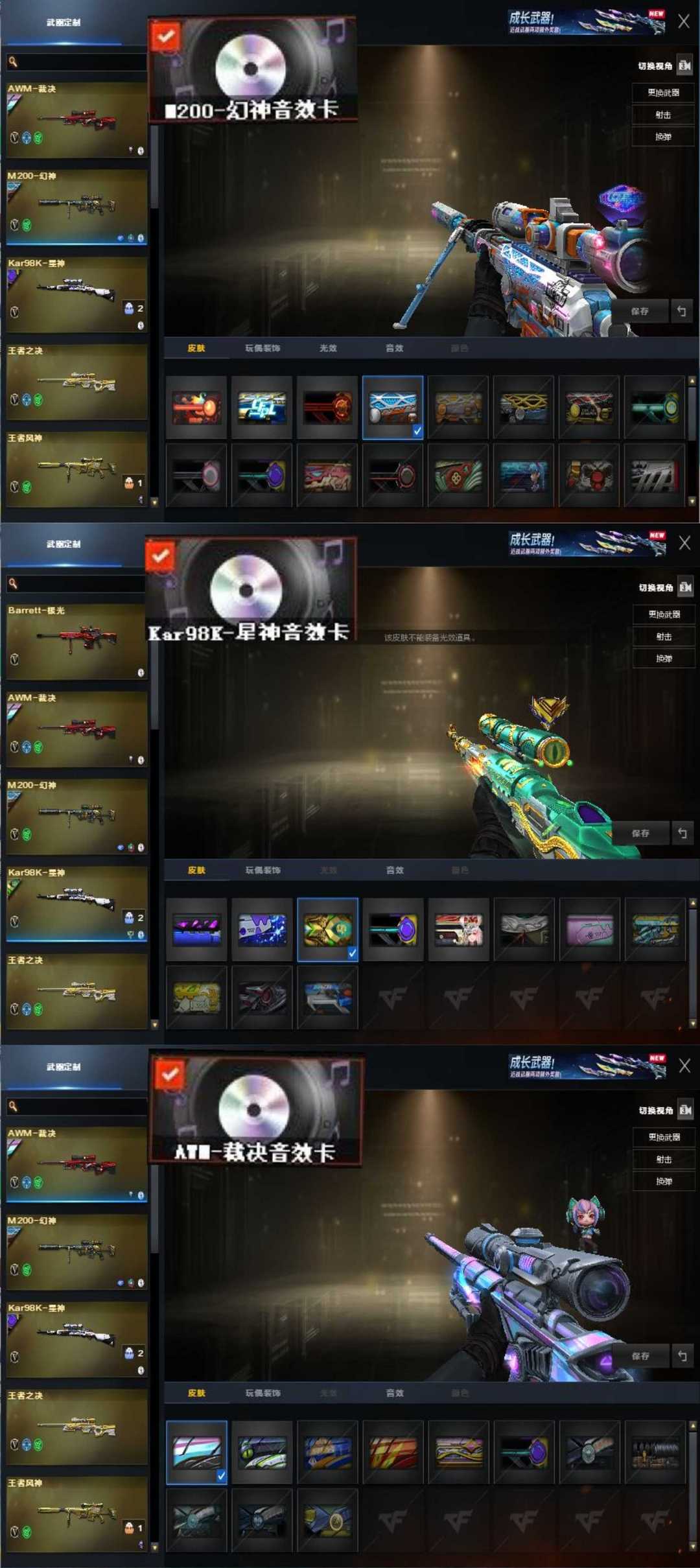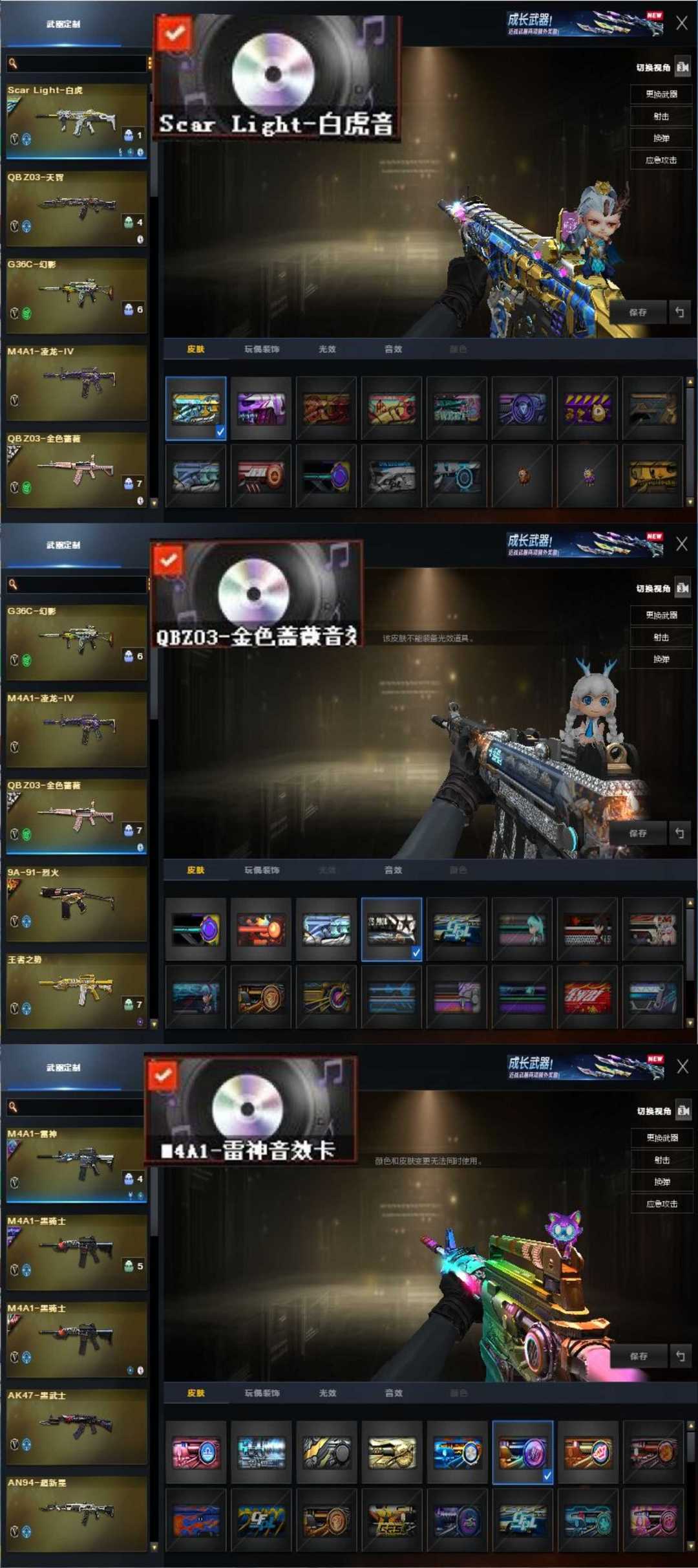 宗师1♥星火小队幻神④皮满音效金蛇星神⑤皮秘银裁决音效冠军白虎♥G36幻影手枪满冠军炽芒蝶刃枪娘4烈