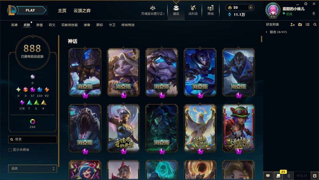 ██ 全英雄 1500皮丨60神话丨可排位丨龙瞎丨IG套丨冰雪皎月丨创星御星丨甜心格温丨神龙亚索