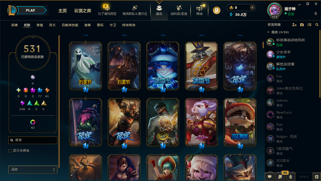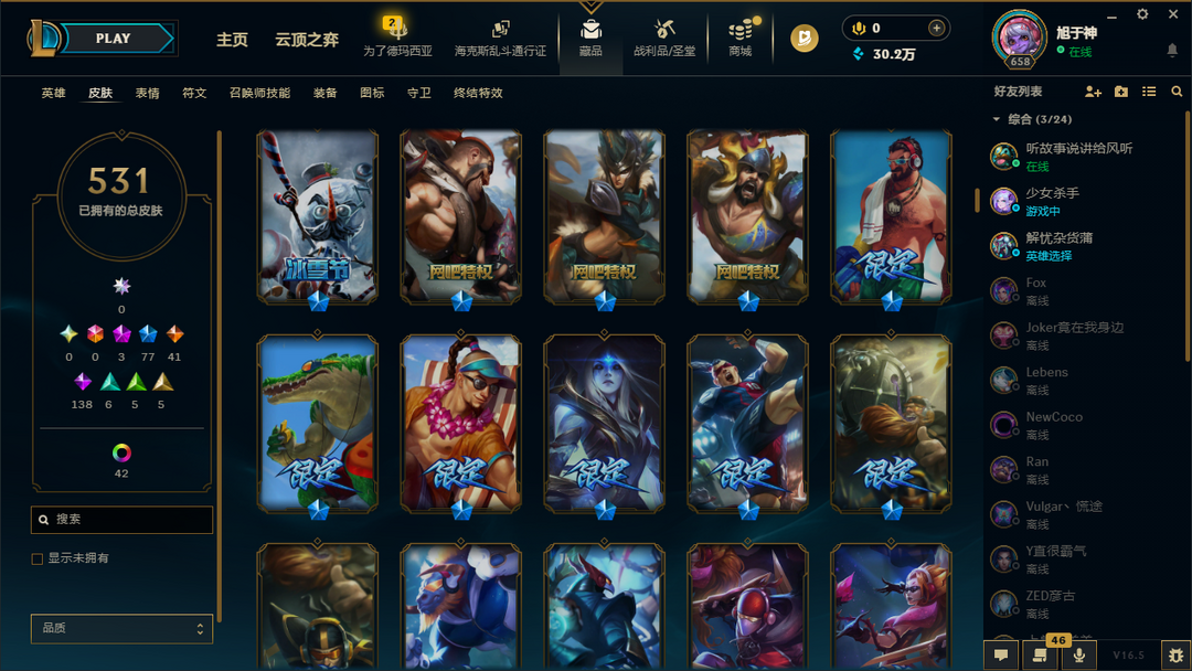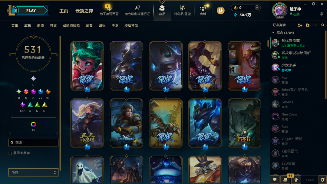 土豪皮肤531✅龙的传人替父从军穿心魔锋赵信暗裔英雄盖伦冠军之矛卡莉斯塔机器迷城加里奥卧龙藏虎贾克斯