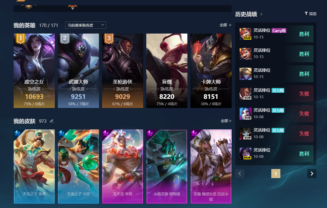 装备描述:【艾欧尼亚】原皮973★神话95★圣天龙李青★玉剑男刀女刀★可排位