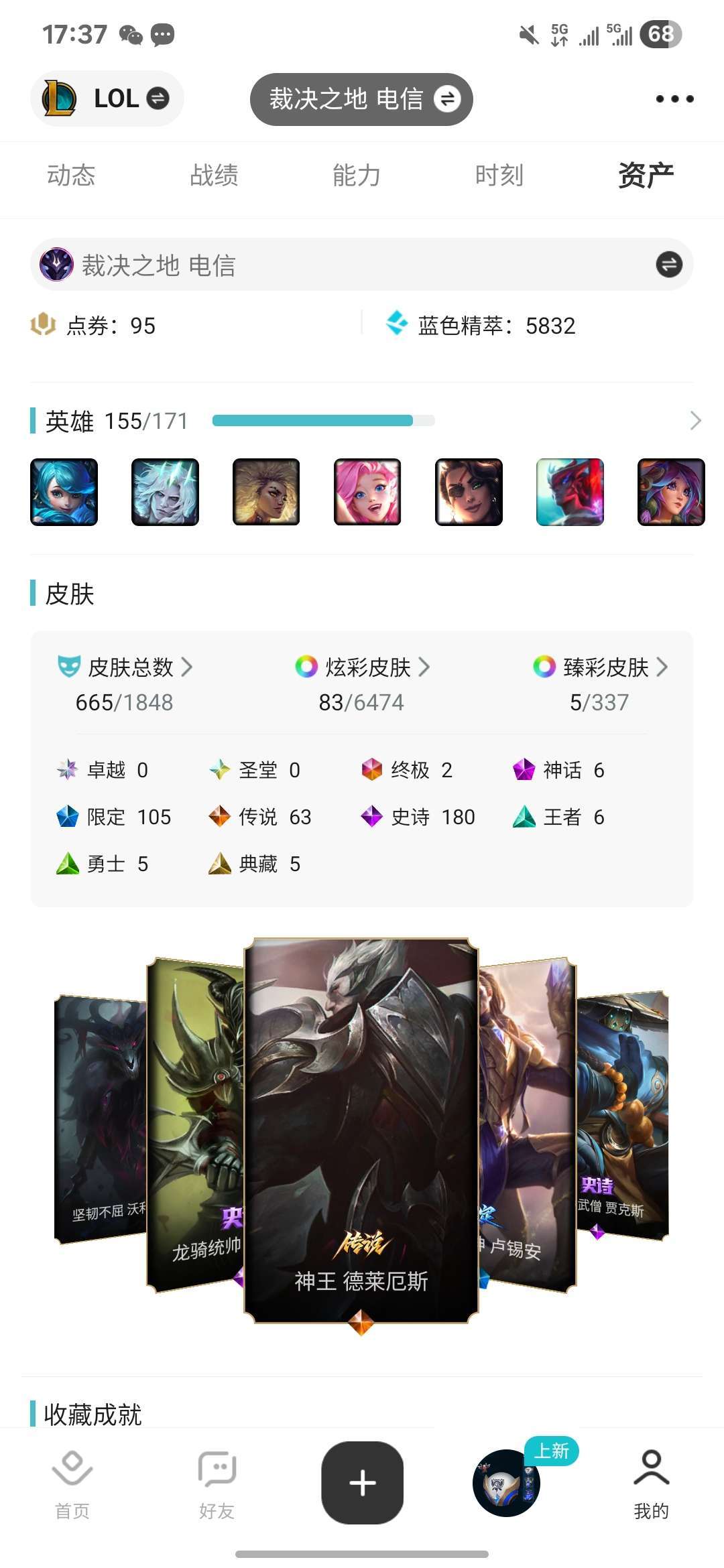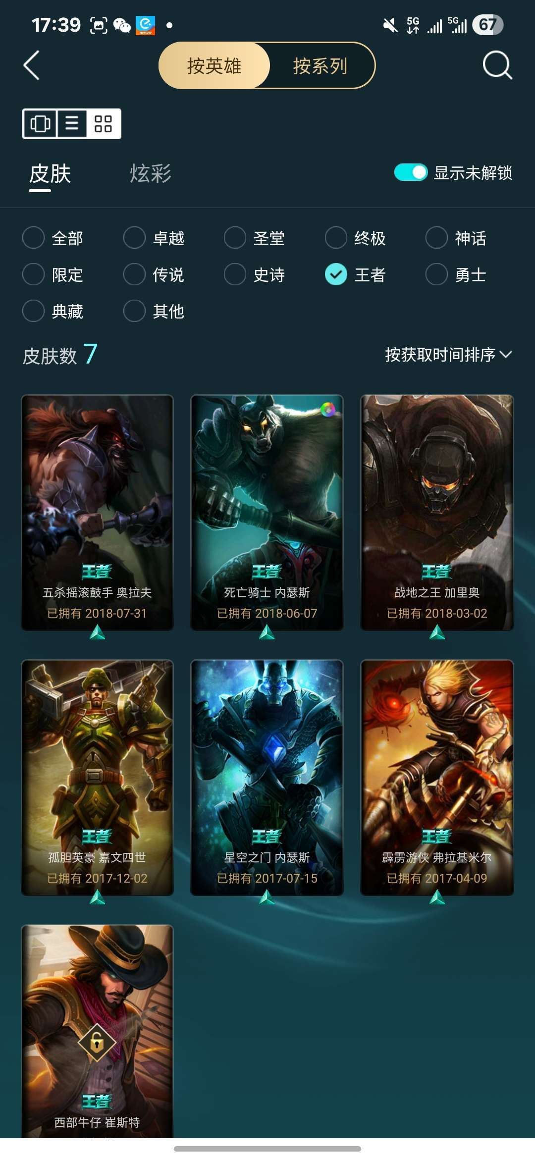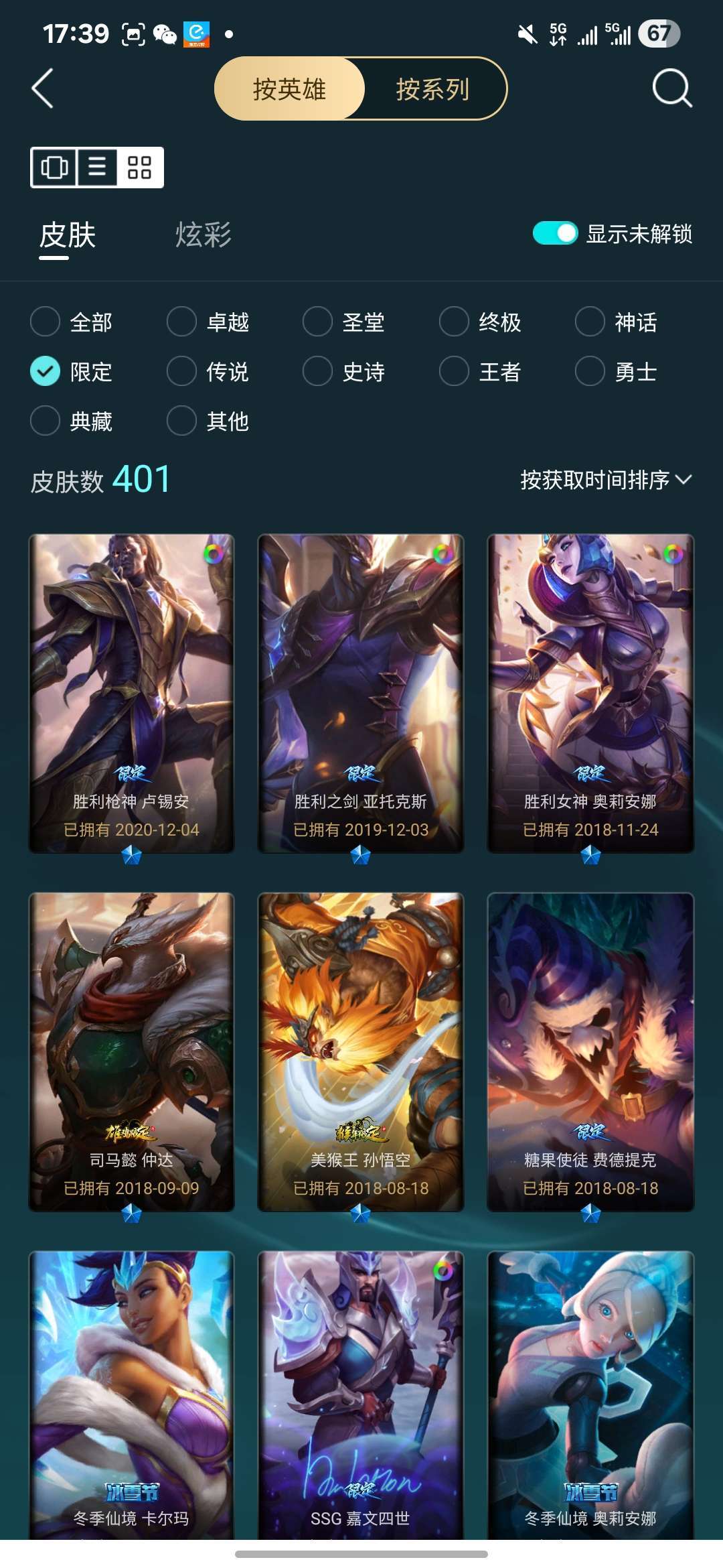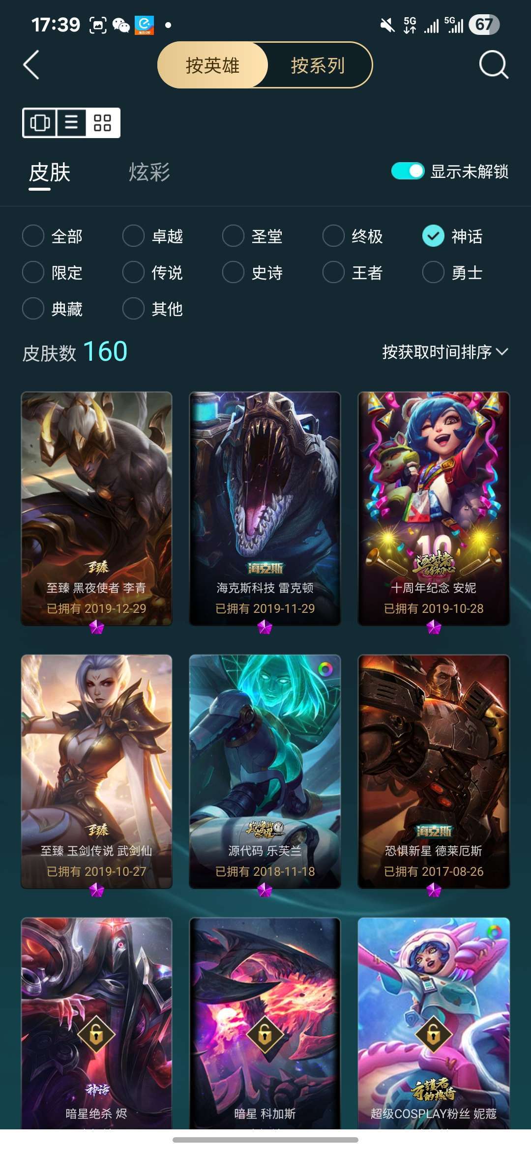 2终级6神话105限定63传说180史诗6王者5勇士5典藏293其他