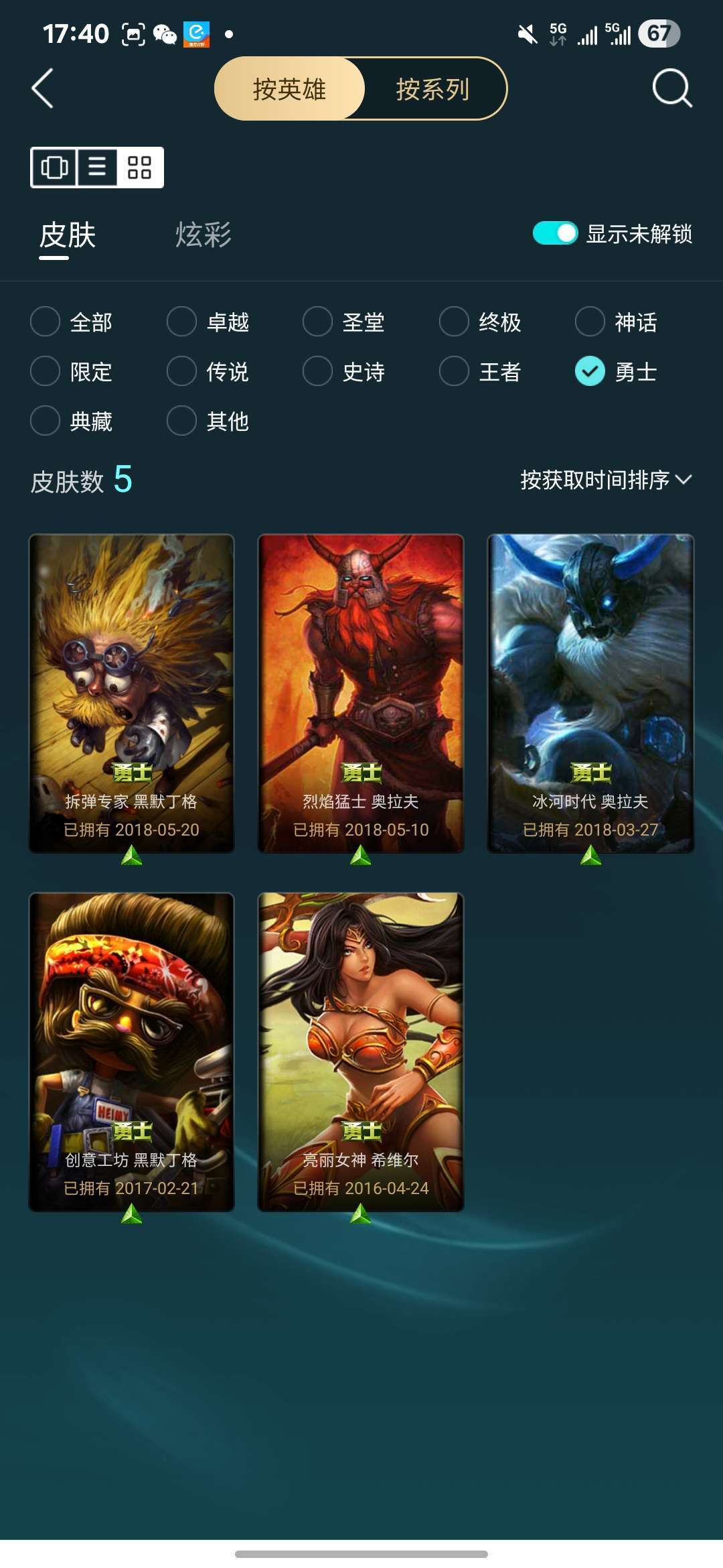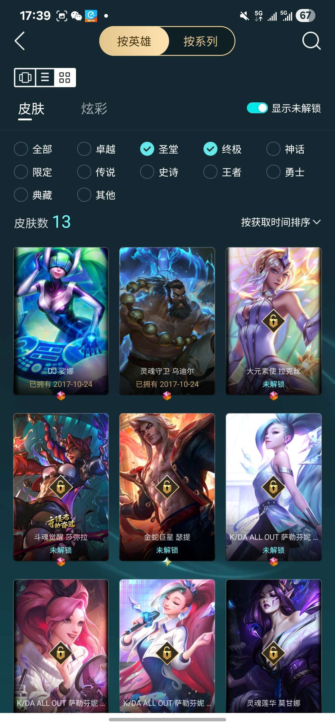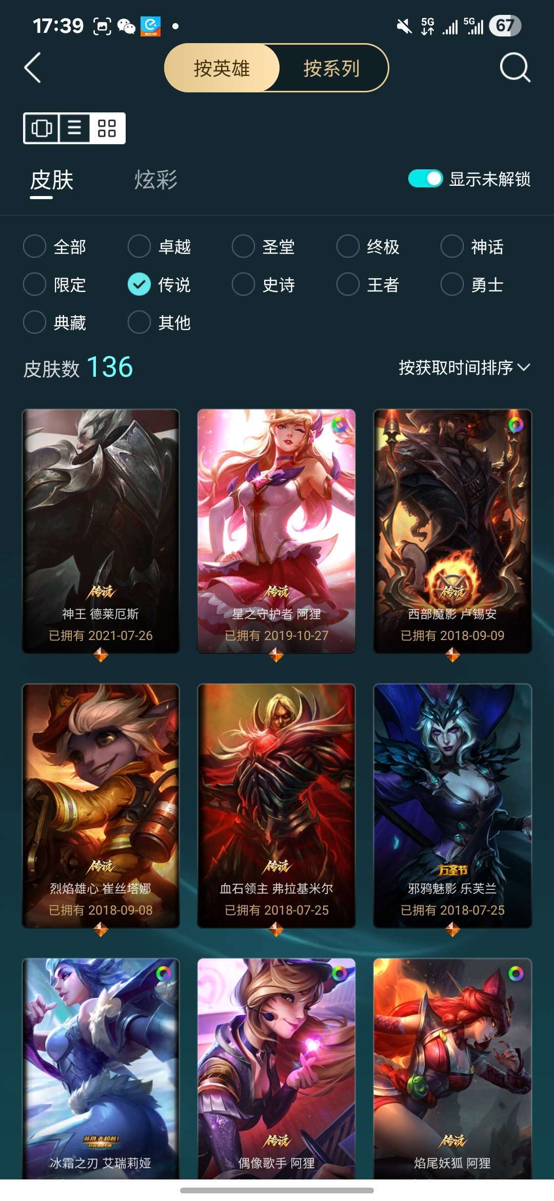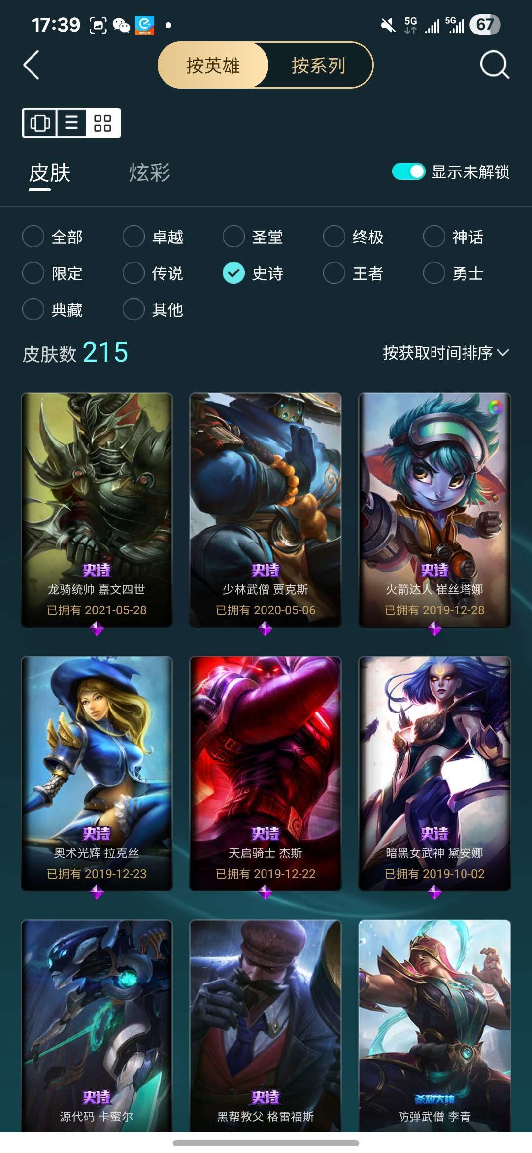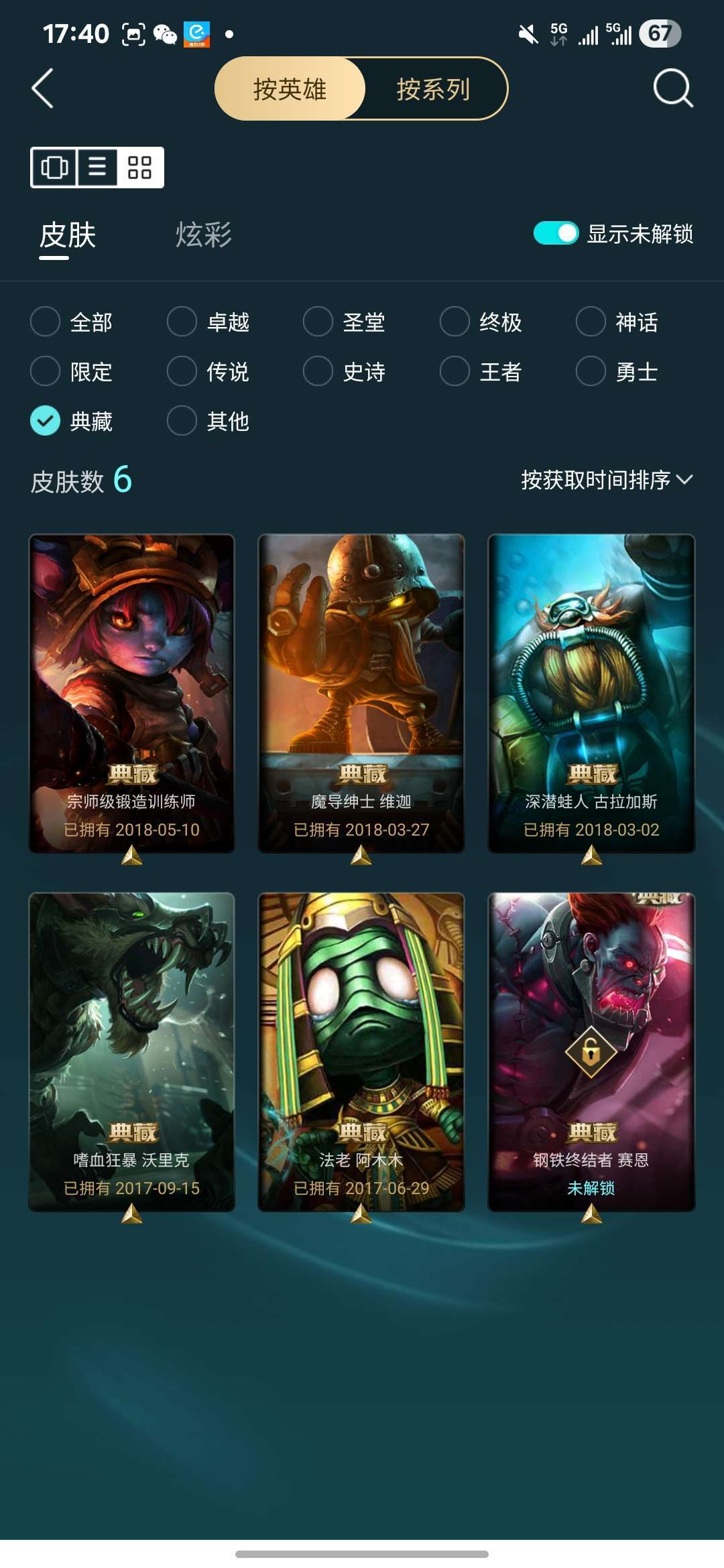 2终级6神话105限定63传说180史诗6王者5勇士5典藏293其他