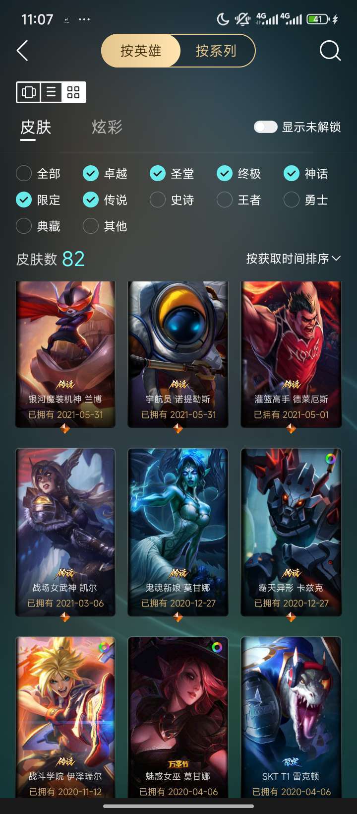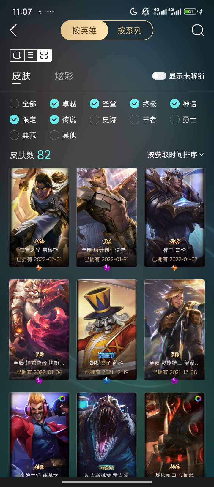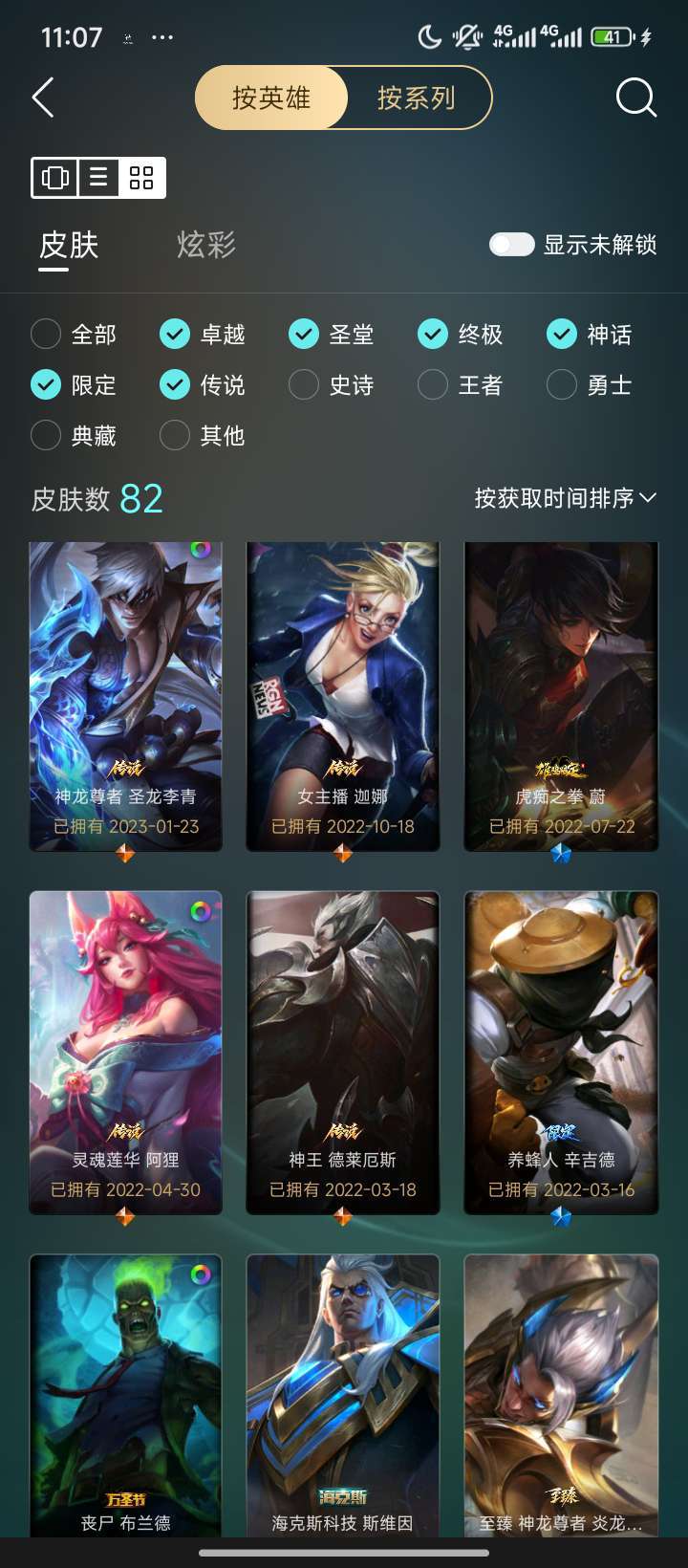 装备描述:基本热门英雄的热门皮肤我都有 如果你要玩一个皮肤不老气 又每个英雄都想玩的号这个就对了